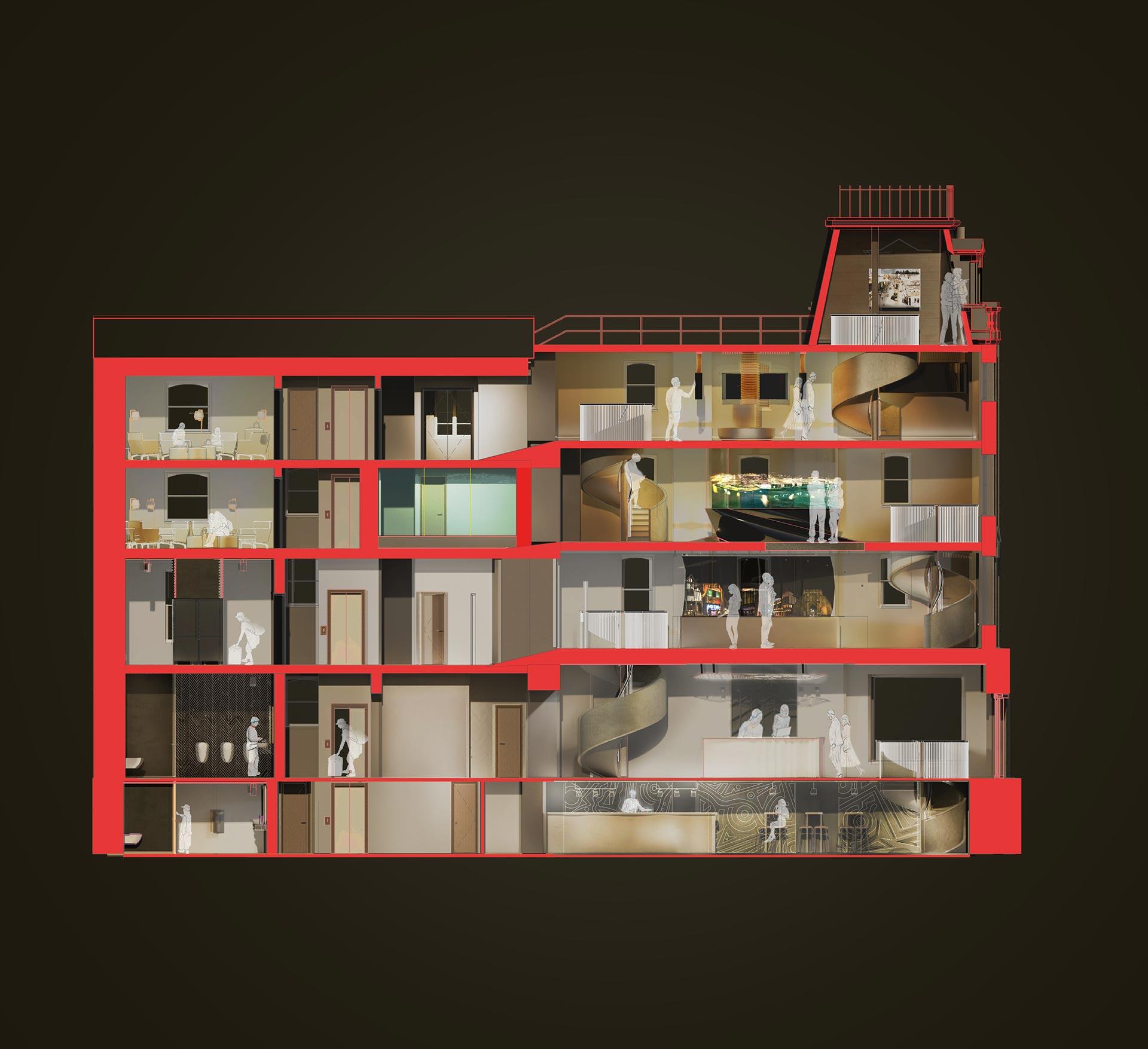 This includes factoring structure, context, atmosphere, environmental consideration, narrative, wellbeing, technology and human need to create multi-faceted spaces.