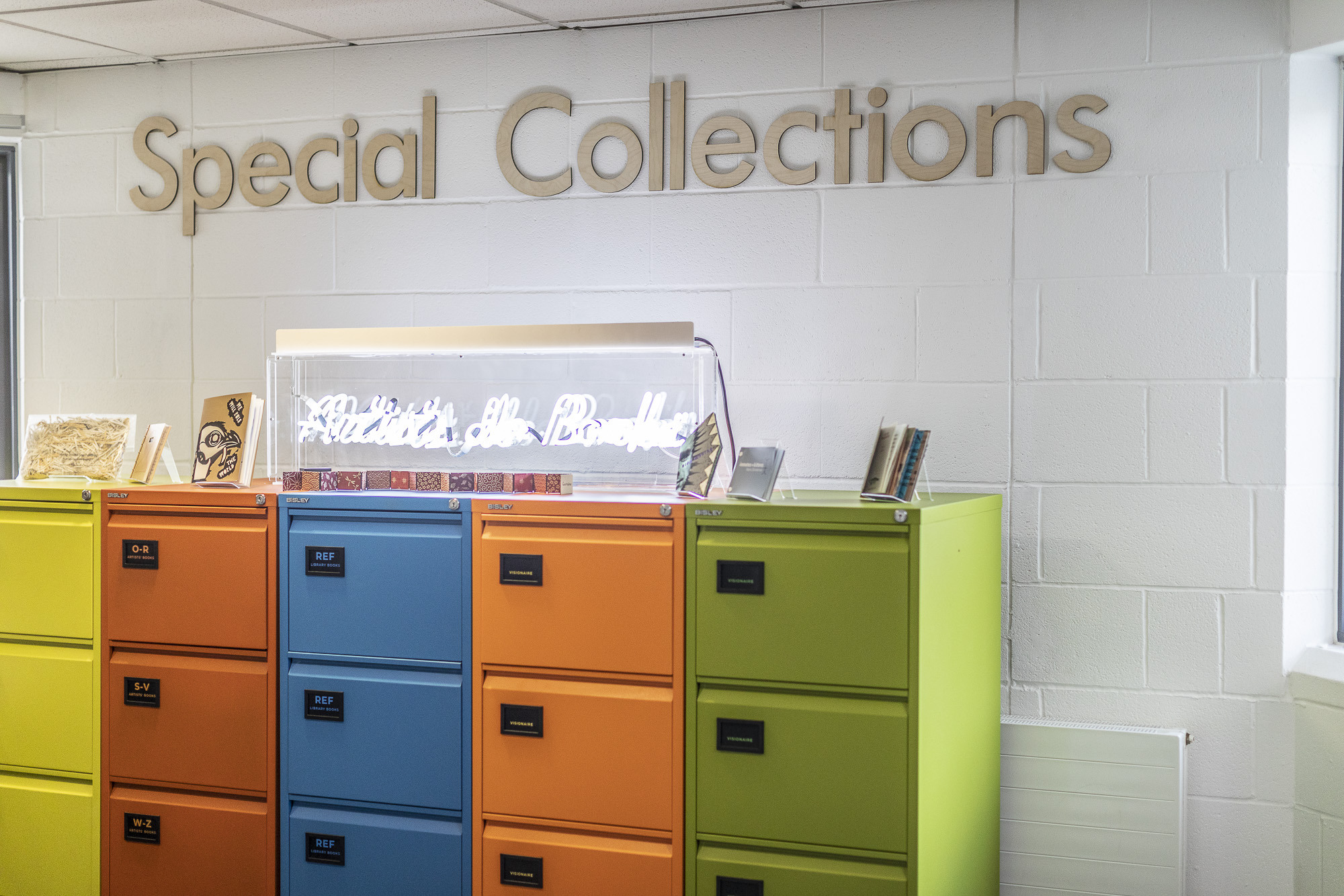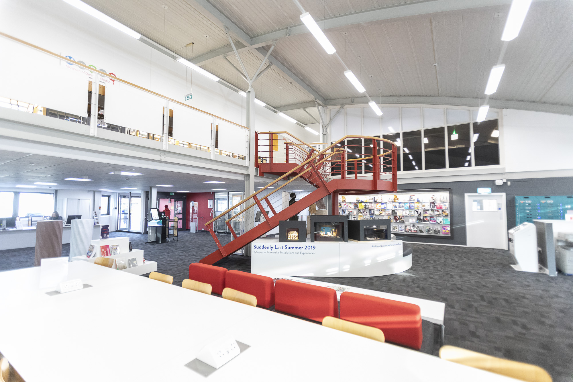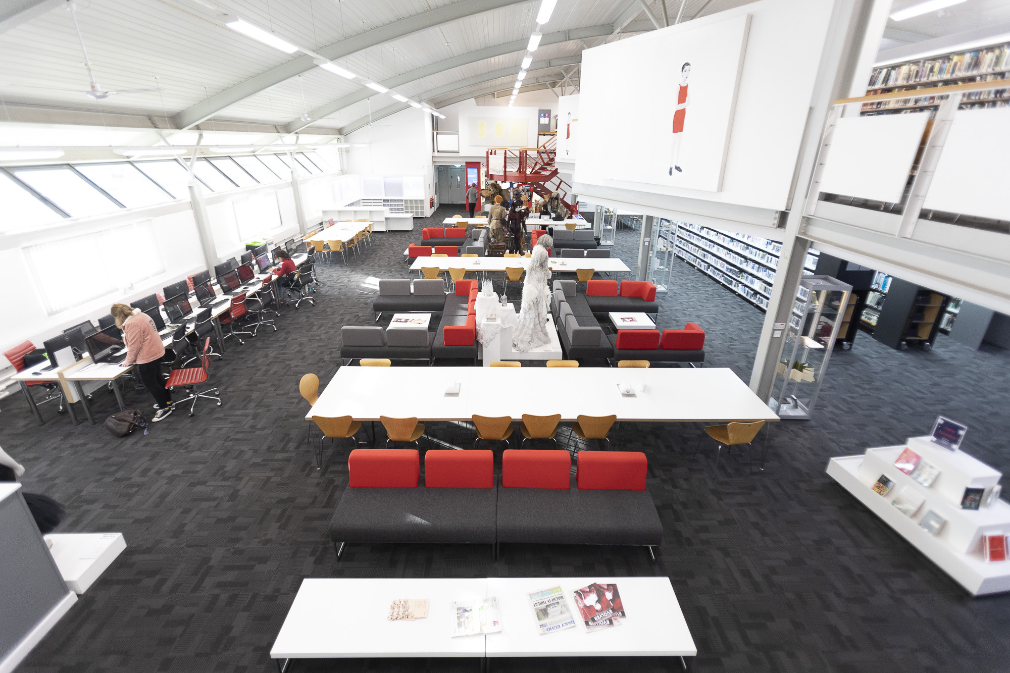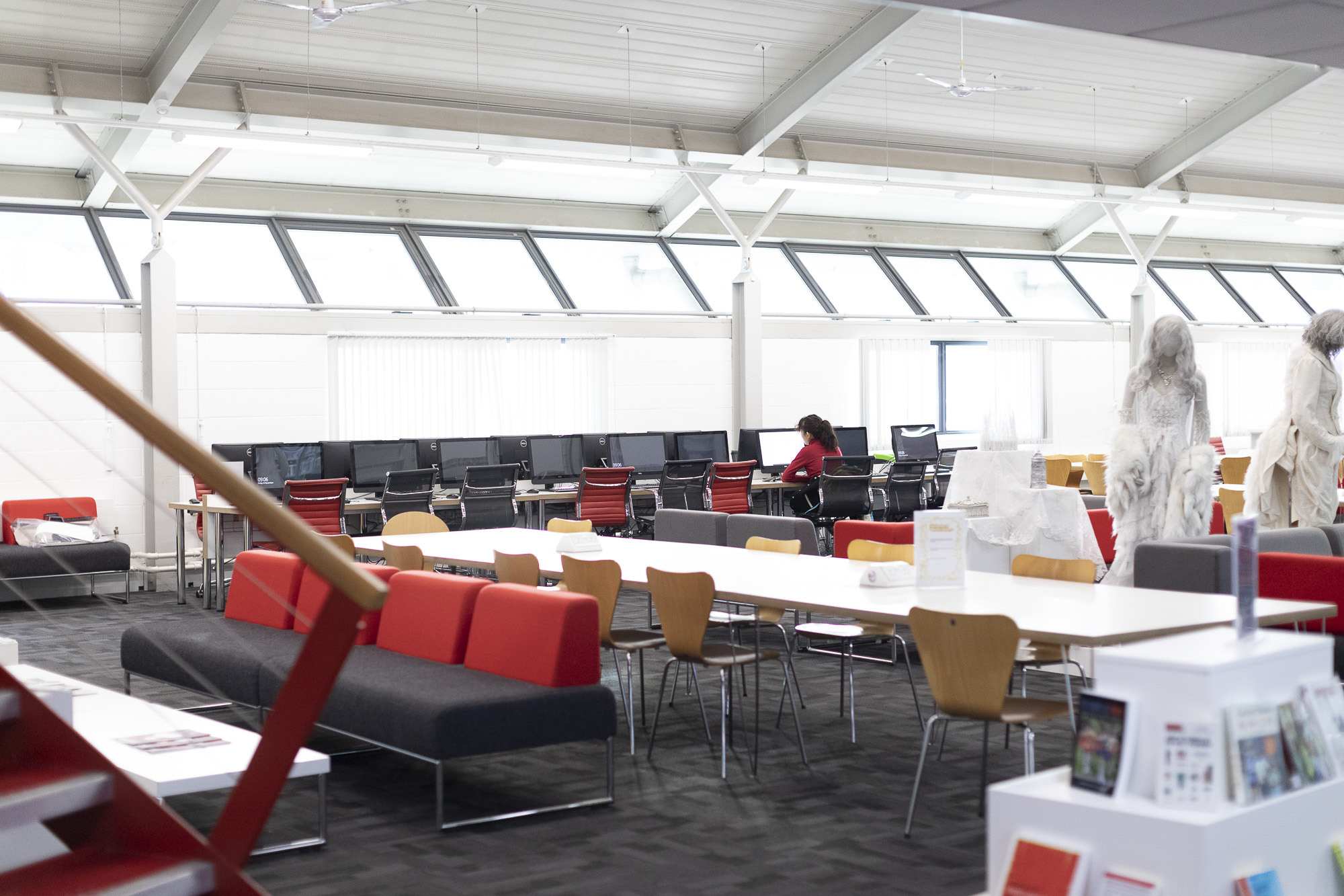 Reflecting the core values of the University, the purpose-built library is dedicated to supporting research and creativity in the disciplines of art, design, media and performance by providing high quality information, resources and services