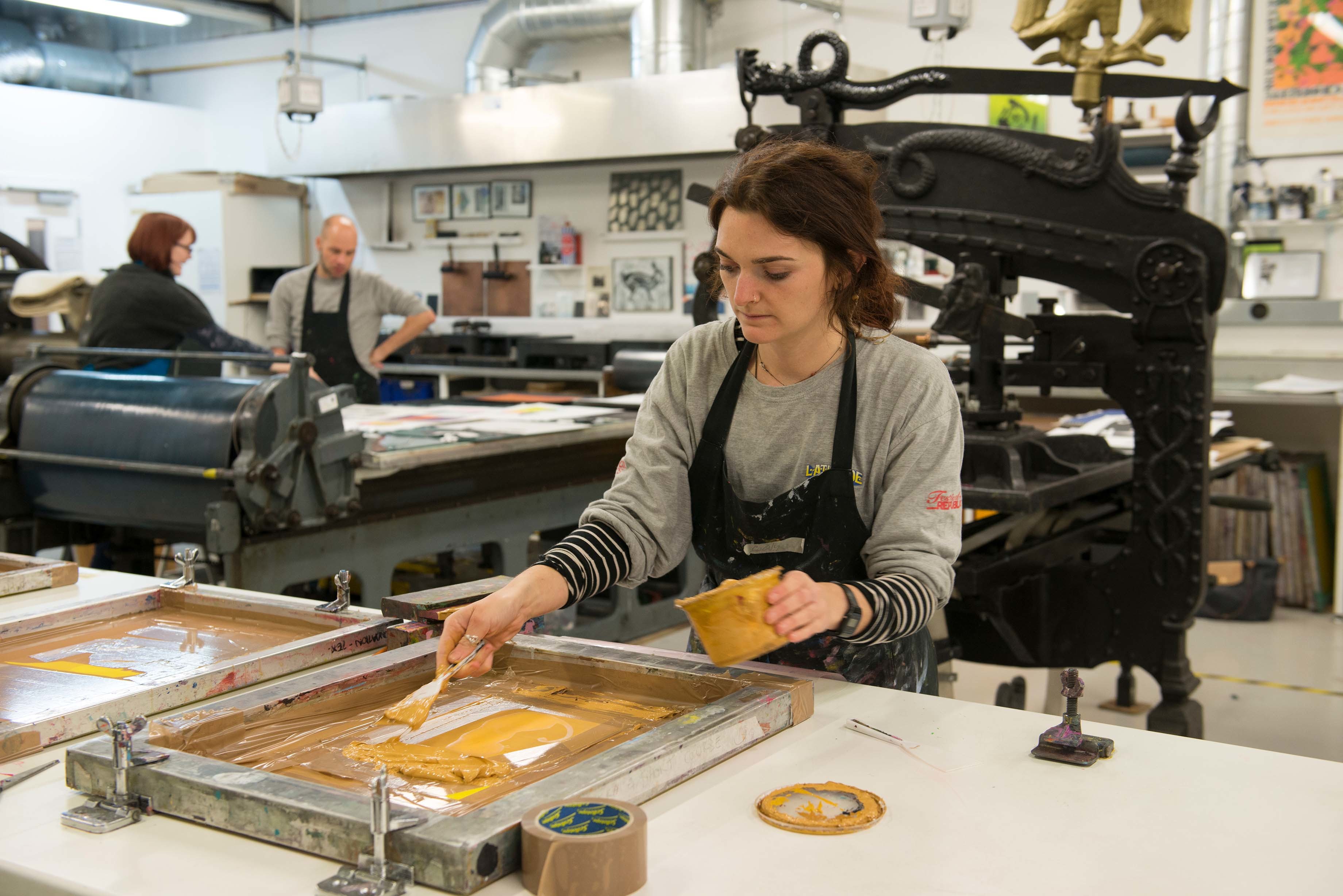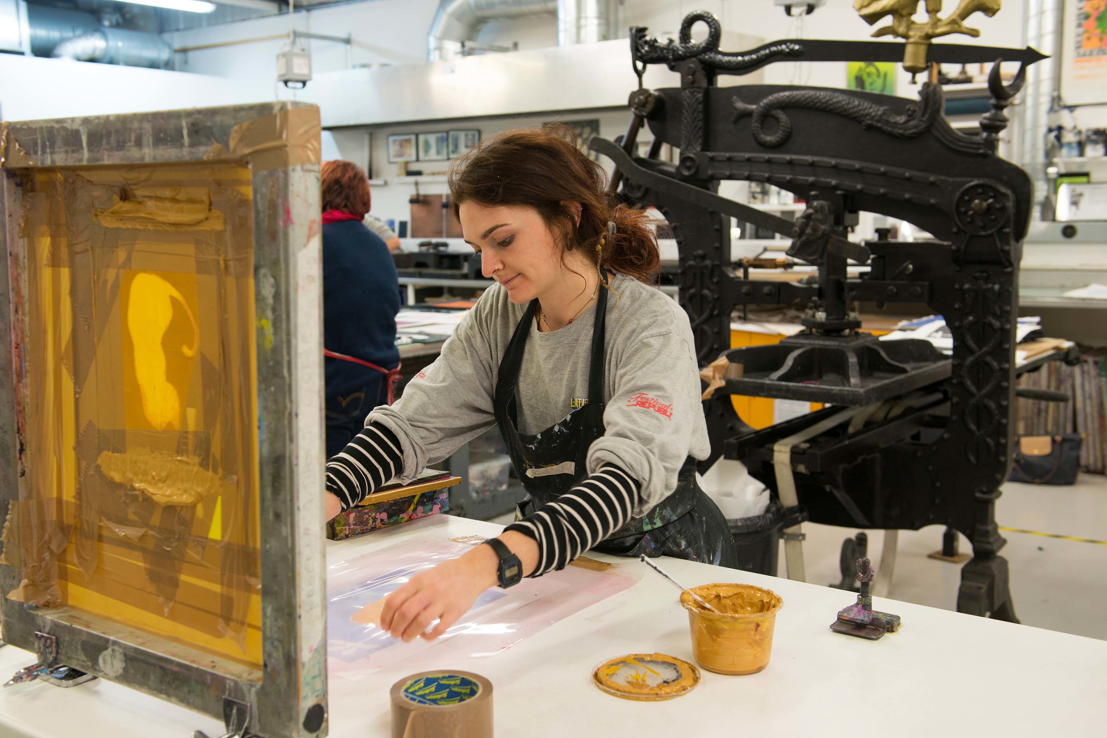You'll use photographic stencil emulsions to make screens from photographic, digital or hand-drawn sources. You'll also use methods of working directly on the screen mesh, allowing experimental print work to be carried out for use with paper and fabrics.