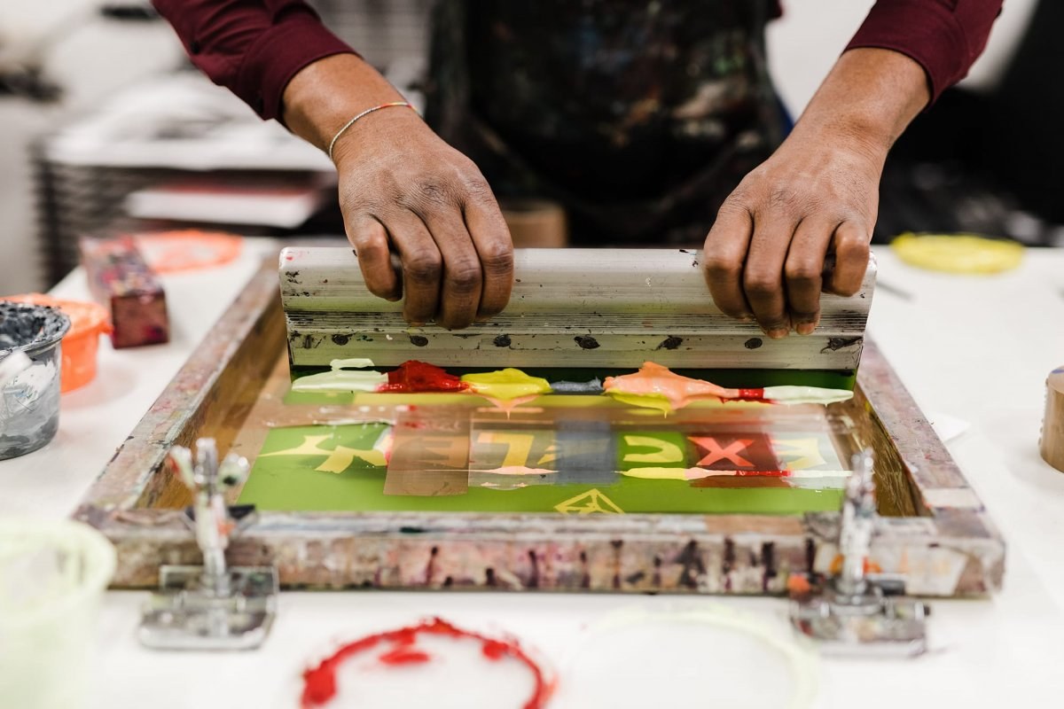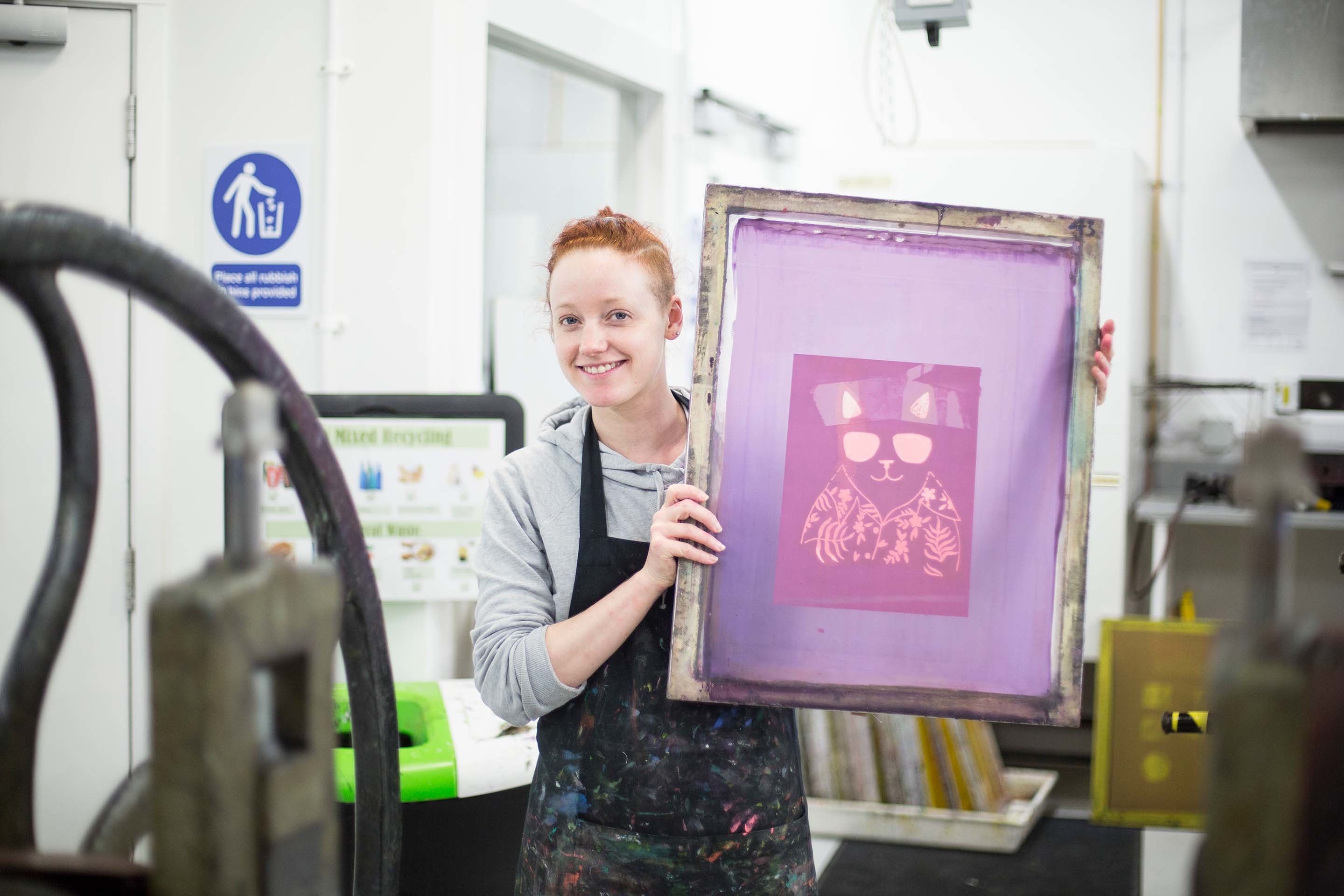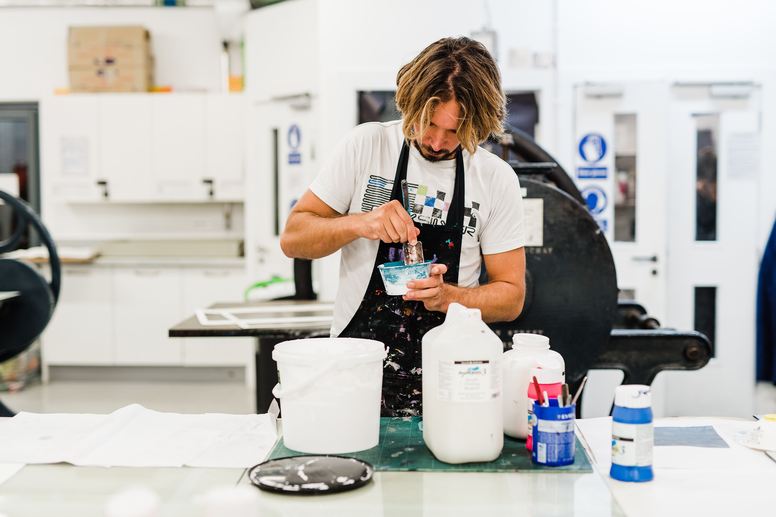 - The proper set up the screen, using the squeegee and the studio’s specialist screenprinting equipment