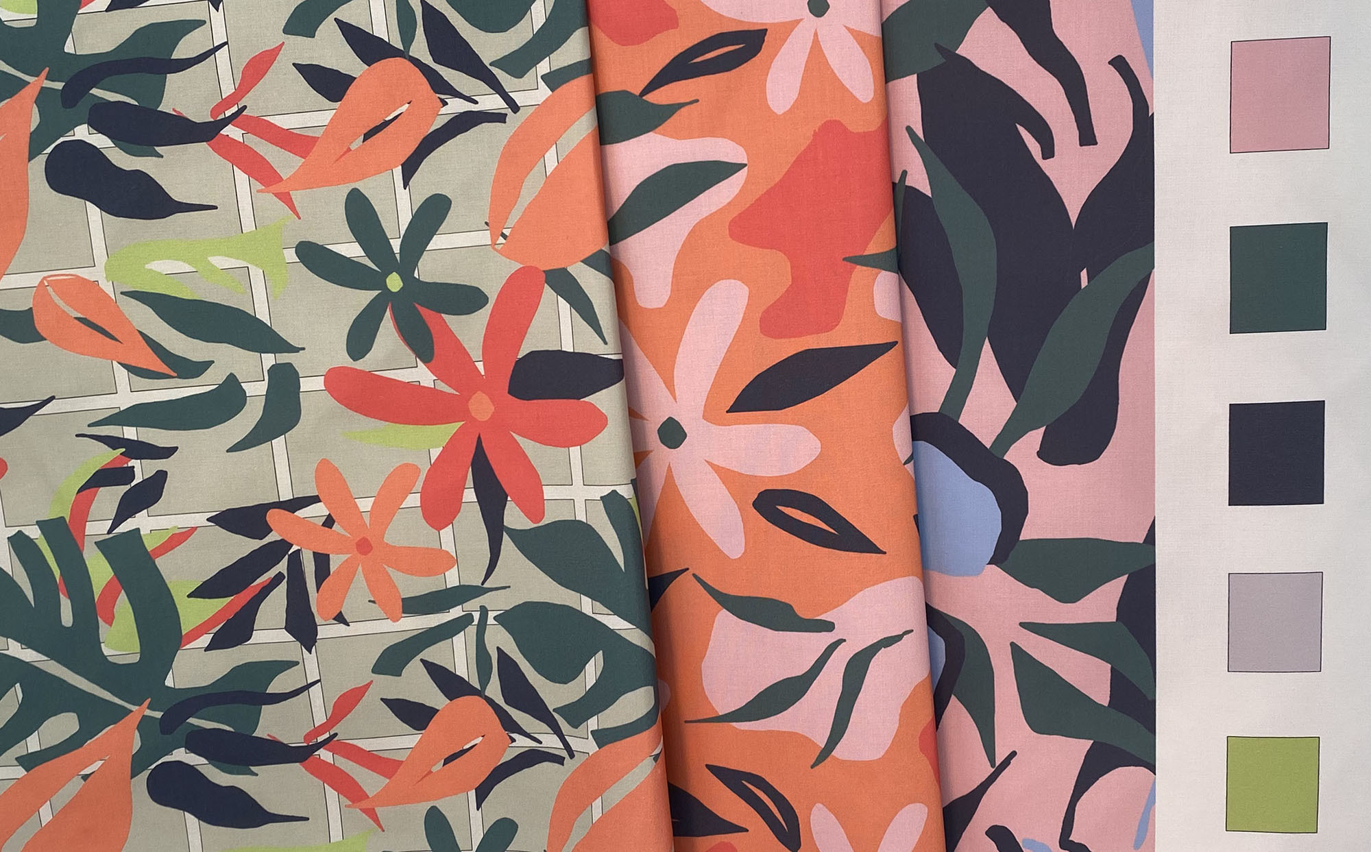 - Leave the course with a mood board, a collection of digital designs, visualisations of designs in context and swatch samples of your final design’s sublimation printed onto fashion fabrics.