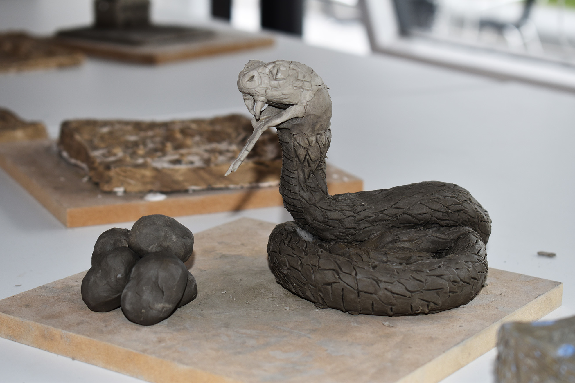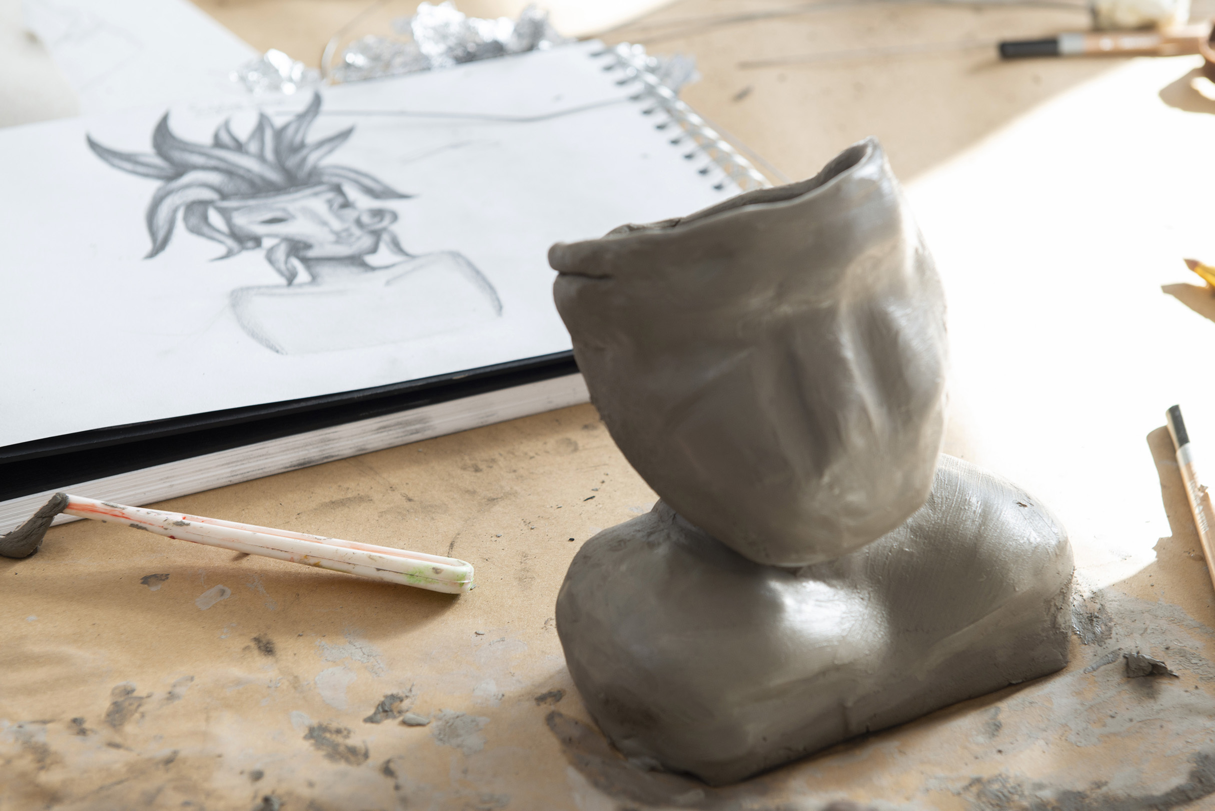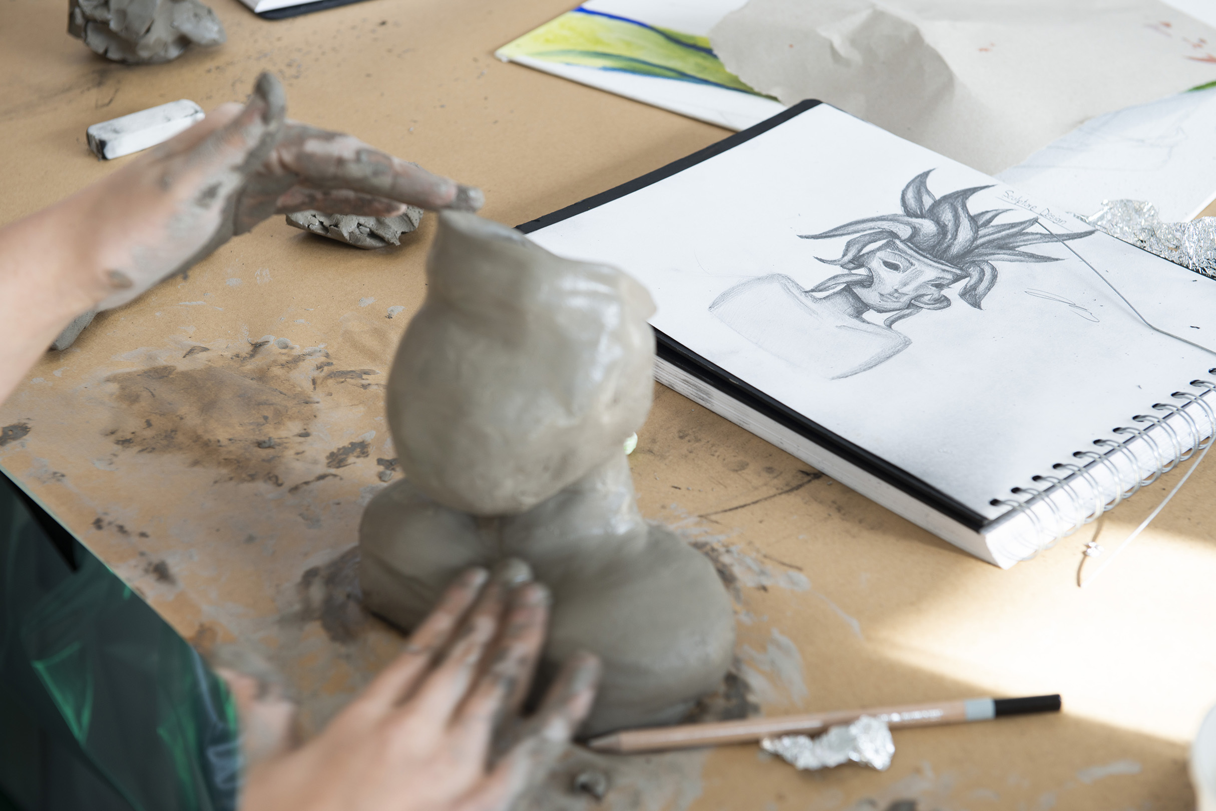 - Explore and experiment with a wide range of materials, including charcoal, water and oil-based paints, clay, plaster, wire, and mixed media.