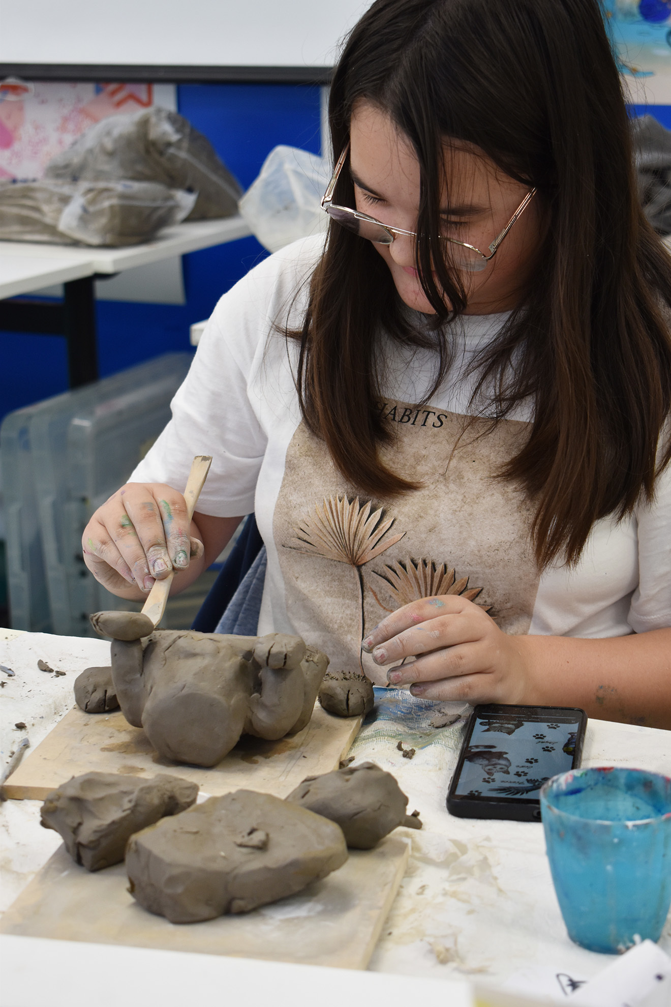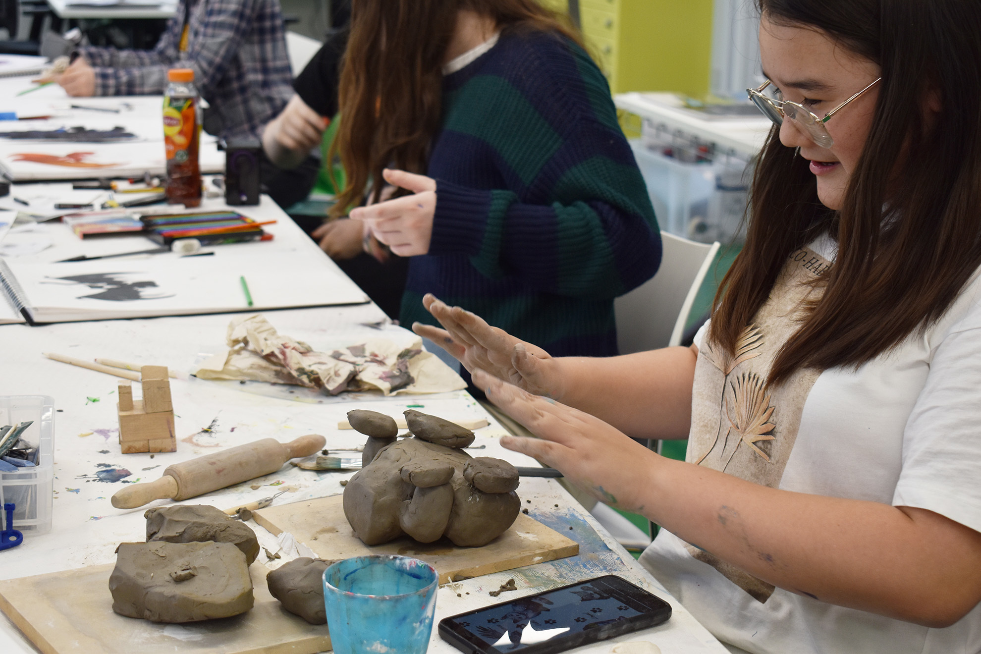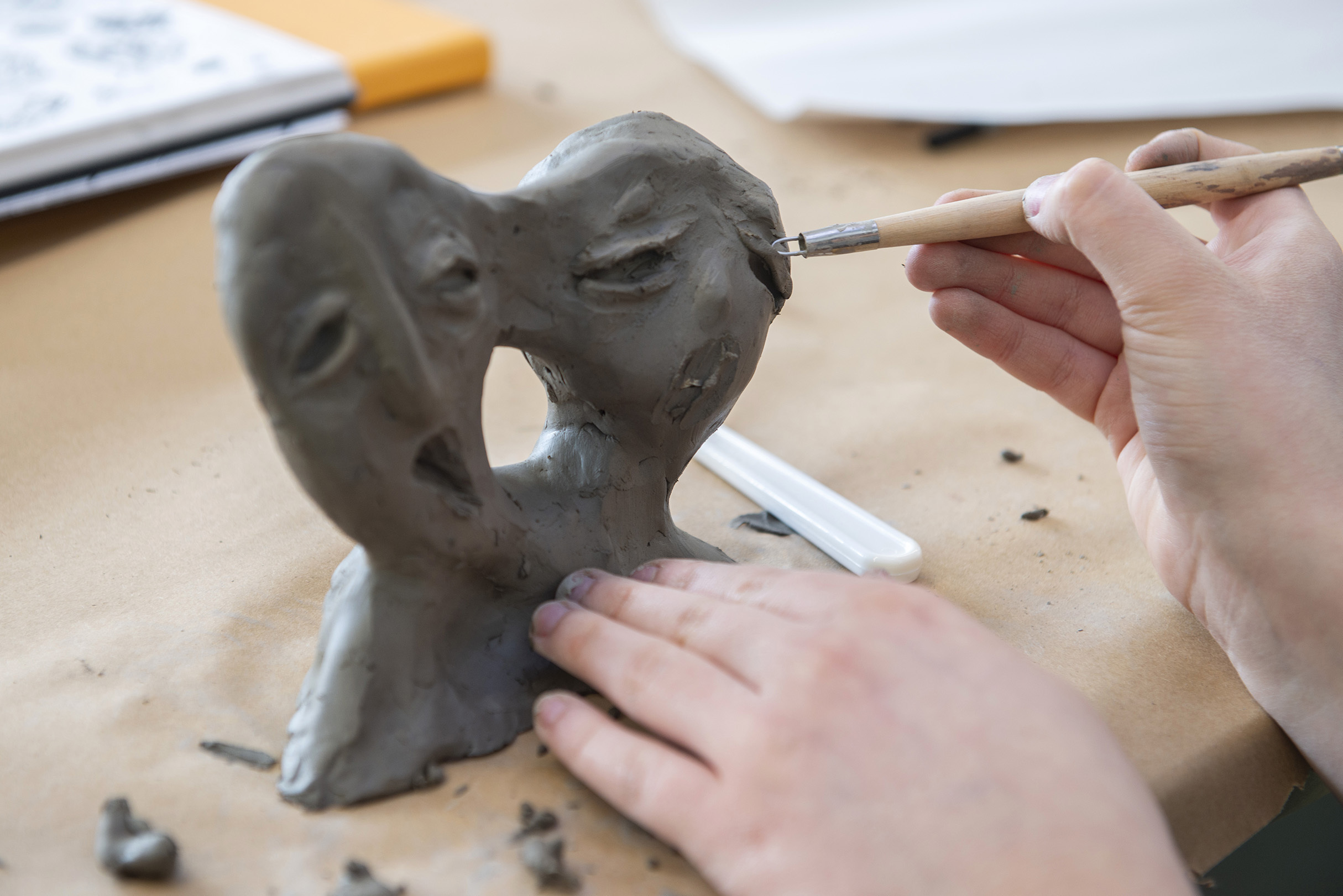 - Explore and experiment with a wide range of materials, including charcoal, water and oil-based paints, clay, plaster, wire, and mixed media.
