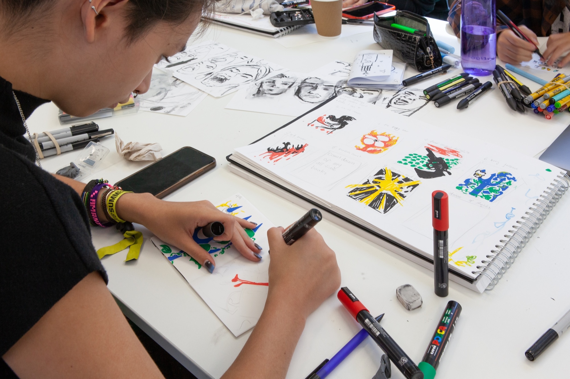 Across 24 weeks, you'll explore three powerful themes: Identity, Worlds, and Student Voice. Through hands-on workshops, collaborative projects and individual creative work, you'll experiment with materials, develop ideas, build skills, and discover how creativity can be used to tell stories, explore who we are, imagine new futures, and speak about what matters to you.