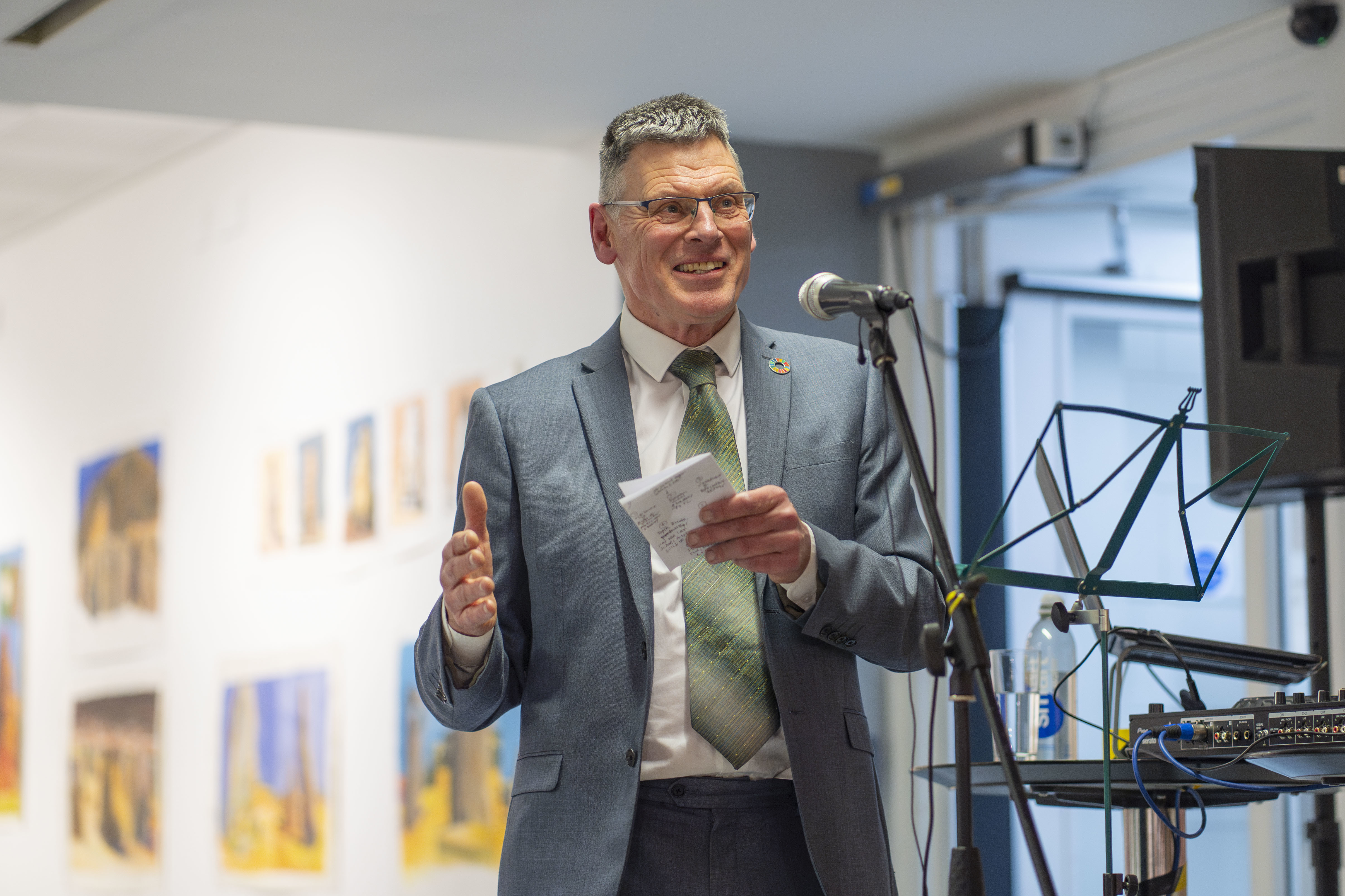 The event, which opened on Thursday 30 January, saw colleagues, academics, and artists celebrate Paul’s years of service to arts education and also welcomed Lisa Mann to the role of Vice-Chancellor and Chief Executive Officer.
