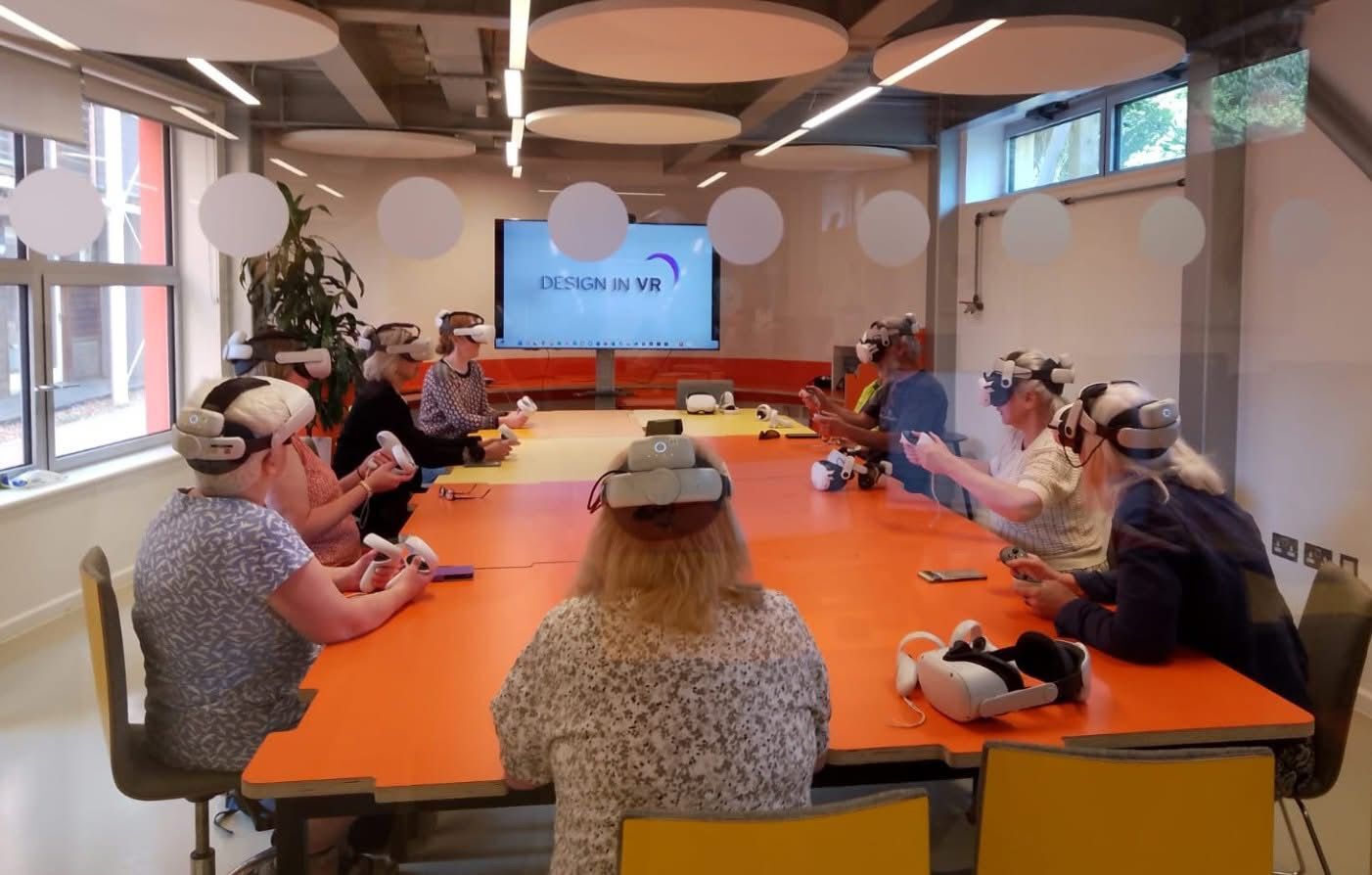 Back on campus, Russell Gagg, Director of the School of Design and Architecture, and Jennifer Anyan, Director of the School of Arts, Media and Creative Industries Management led AUB campus tours including the Fine Art studios, Modelmaking for film and for architecture, stage design, stop motion film-making, costume making, and into the Innovation Studio, where the councillors had the opportunity to try out some of the Virtual Reality headsets as part of a VR demonstration.