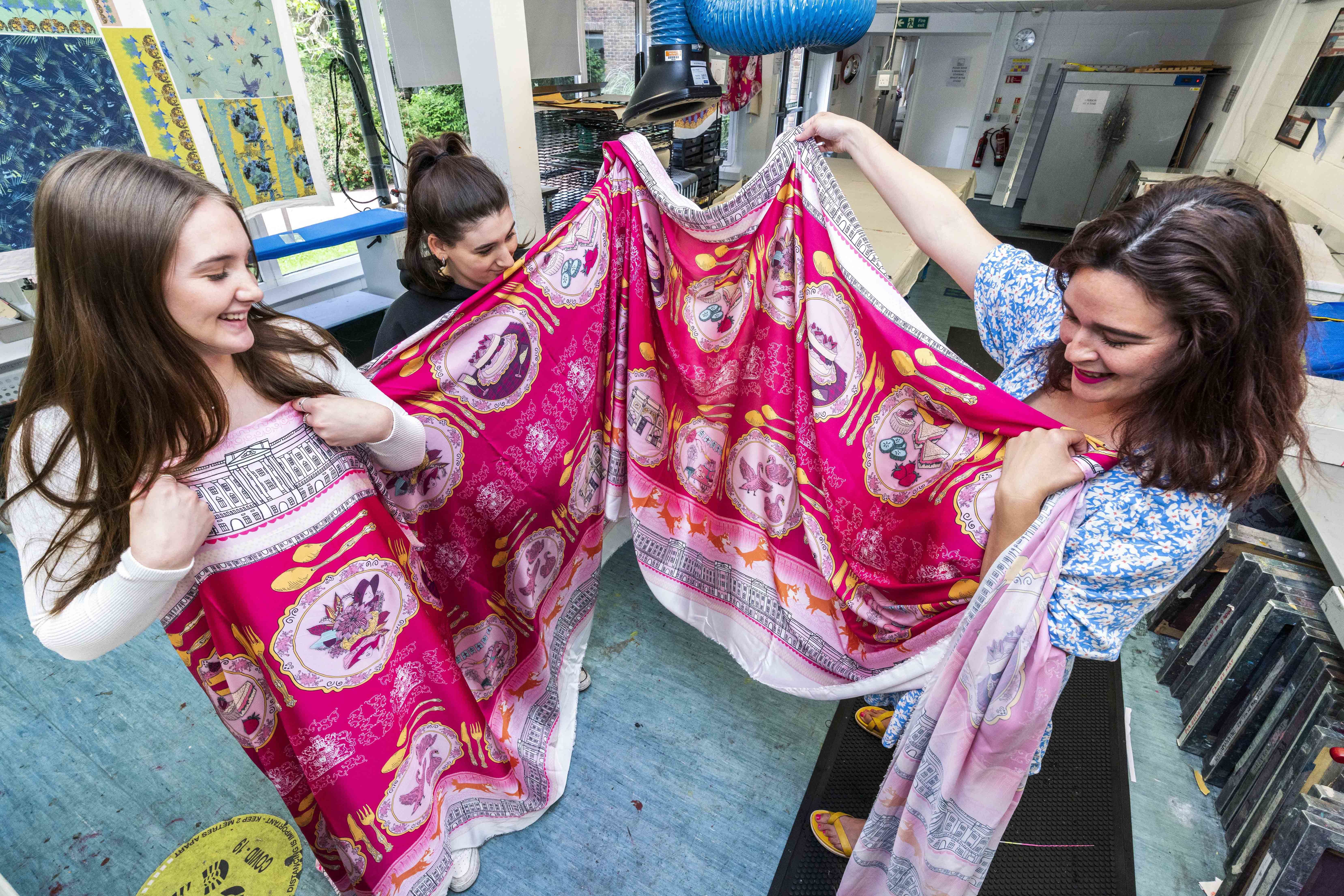 The project began with the whole of the University’s undergraduate Textiles course drafting ideas and designs, before final chosen motifs were selected featuring the work of fifteen 2nd year BA (Hons) Textiles students, including Gemma Arnold-Baker.
