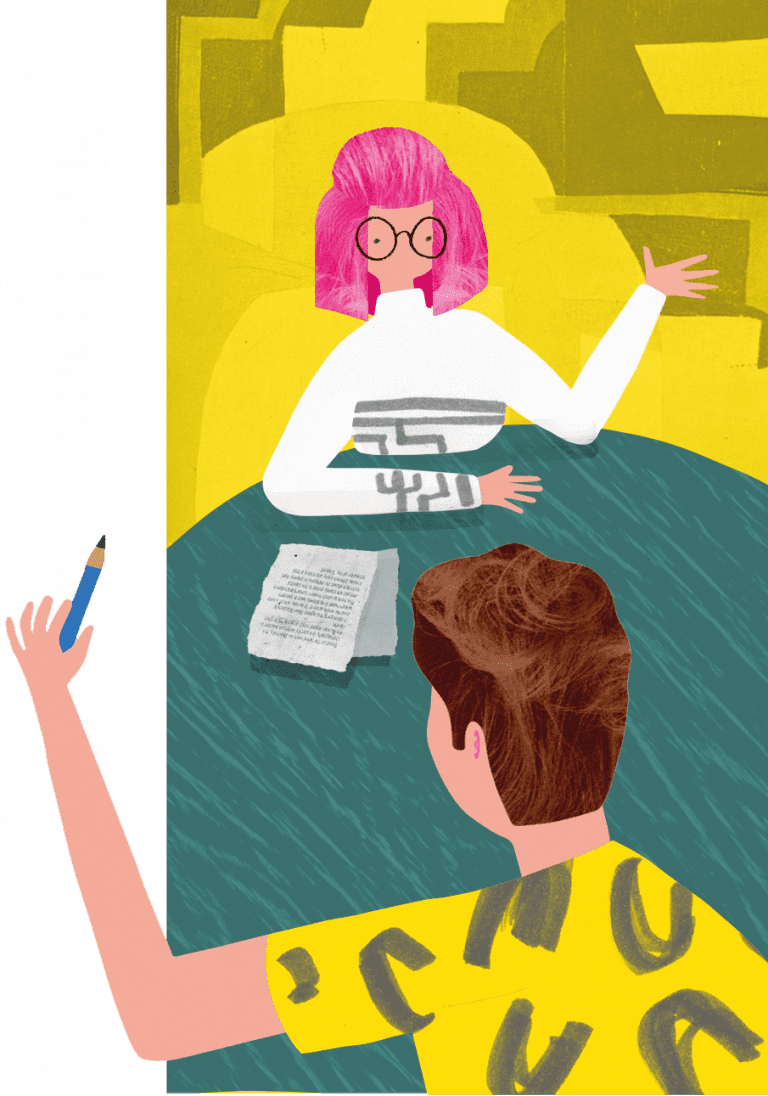 It’s time for a group critique with the tutors! We take it in turns to look through last week’s work. I take notes and jot down what I can improve upon for my next take.