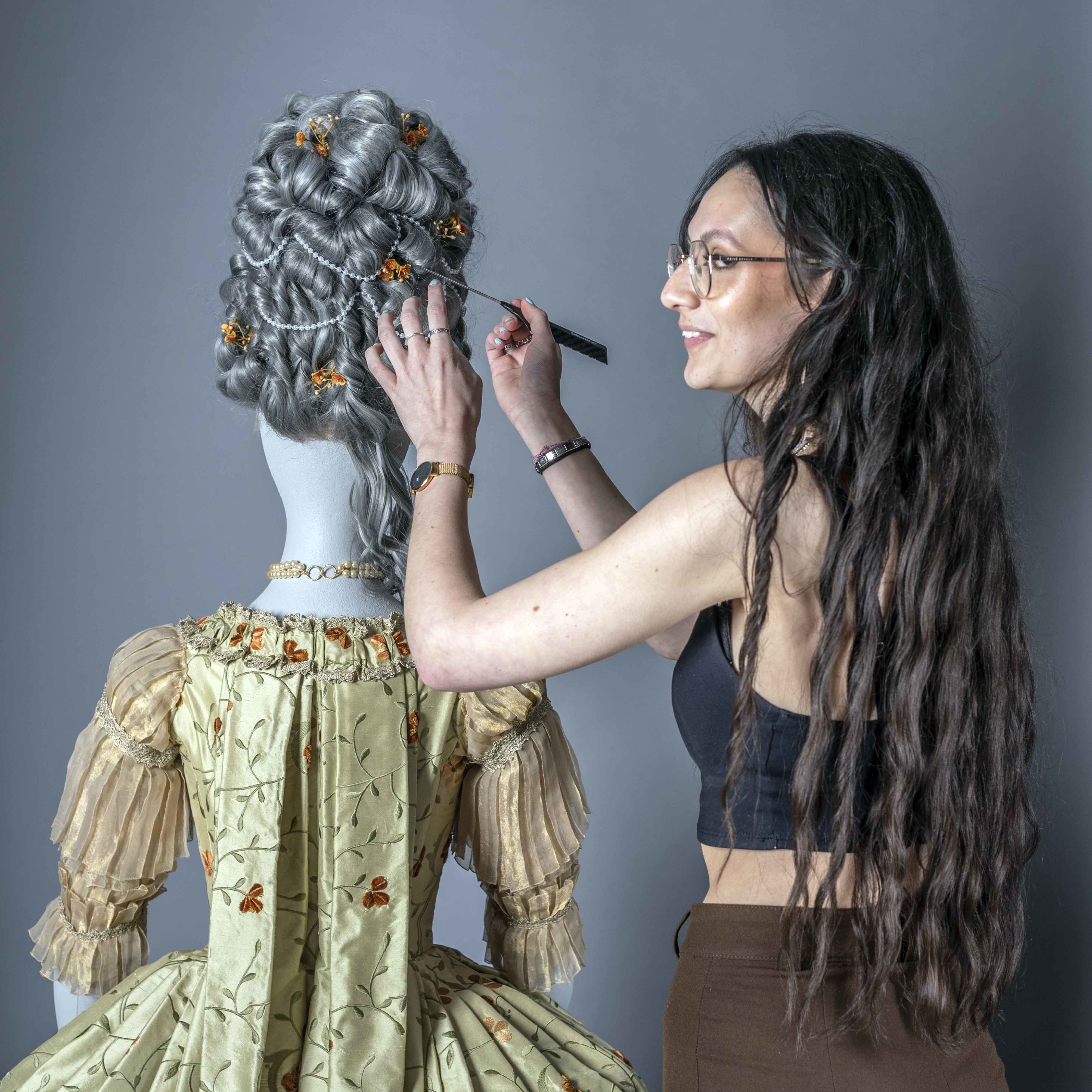 The BA (Hons) Costume and BA (Hons) Makeup for Media and Performance students were split into designers, supervisors and makers by and worked alongside the Heights’ creative team to research period hair stylings and accurate clothing, and source rare fabrics for the costumes, which were then made in Bournemouth and transported to the Heights for installation.