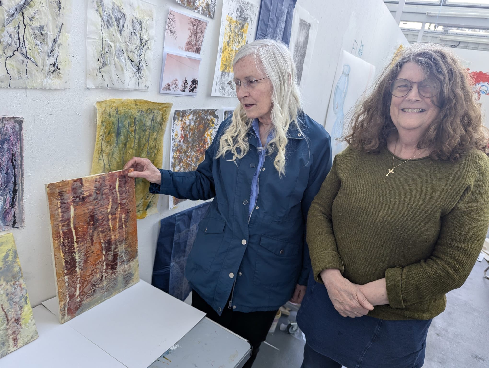 Tom showed Julia around the campus including a visit to the Columbian Print and Albion Press Rooms, featuring two print machines that have been in use since 1880 and still used by students today. Her visit continued on to North Light Studios where she was introduced to BA (Hons) Fine Art course leader Dr Richard Waring, who showed her around the studio where she chatted to third-year students working on their final projects.