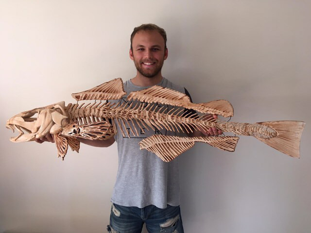 Second year BA (Hons) Modelmaking students Sam and James have created a life-size model Atlantic Cod skeleton, a once plentiful fish breed caught off Poole’s coast, now designated as endangered by the IUCN.