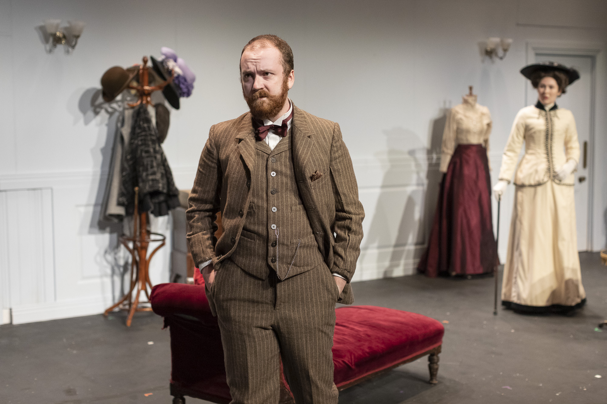 London 1904. The play is initially set in an up-market fashionable women’s clothes shop, which caters for the very wealthy. However, the working conditions behind the scenes are poor and the young women, who make the outfits, are required to work long hours to meet tight deadlines and the client’s demands.