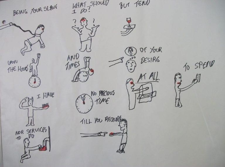 During classes, Dr. Whitfield has used memory support systems to aid students struggling to remember and recall their words in performances; encouraging the use of flash cards placed strategically around performance spaces and the development of imagined ‘rooms’ whereby students walk through scenes in their mind, using memories and cues to aid in the progression of their pieces.