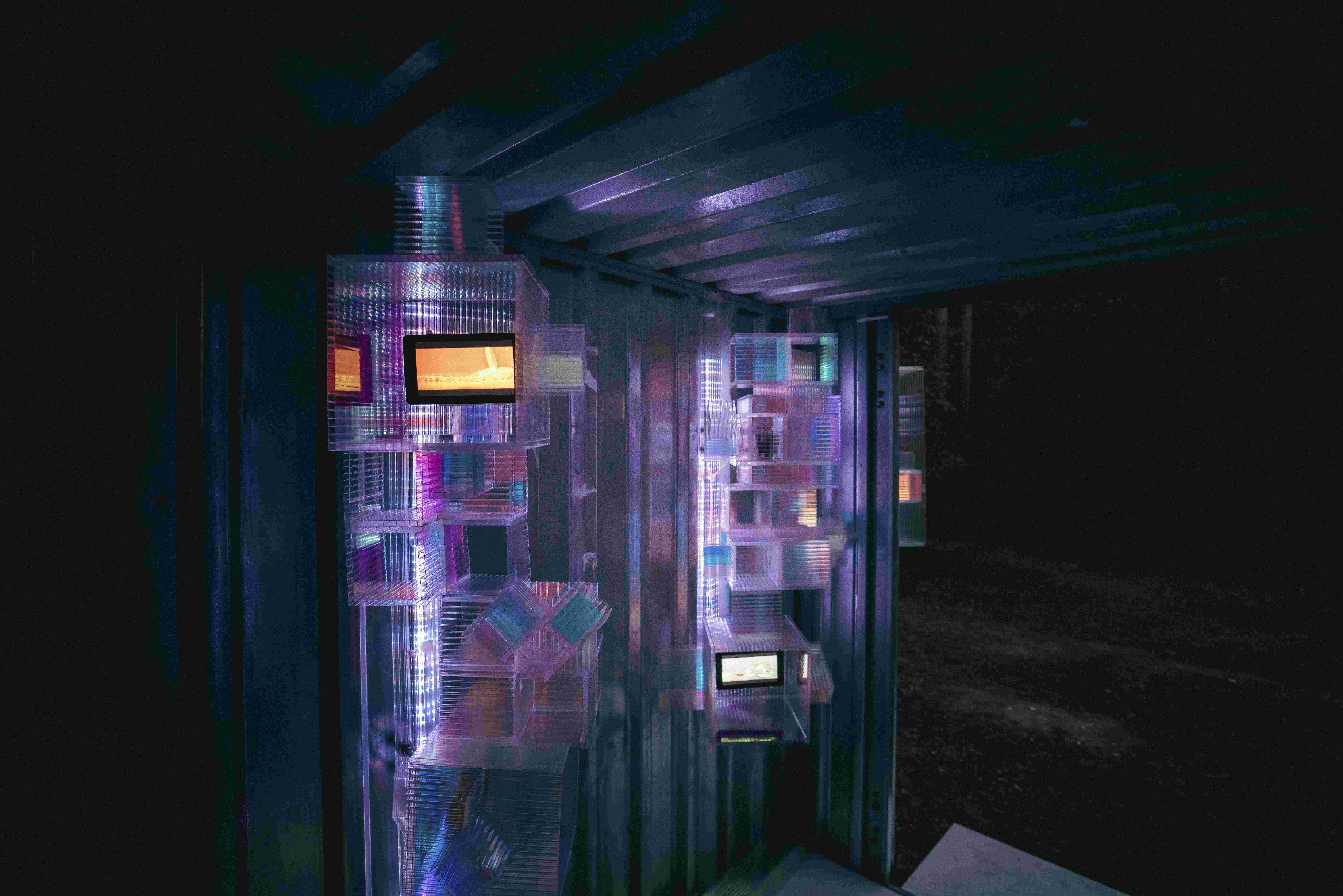 The installation played host to student work exhibited across eight small screens, with embedded polycarbonate cubes derived from fractal forms found within crystal structures, with BA (Hons) Graphic Design students Grace Reeves, Ciara Sevior, Toby Rivett and Mia Erwig, designing the project’s brand identity.