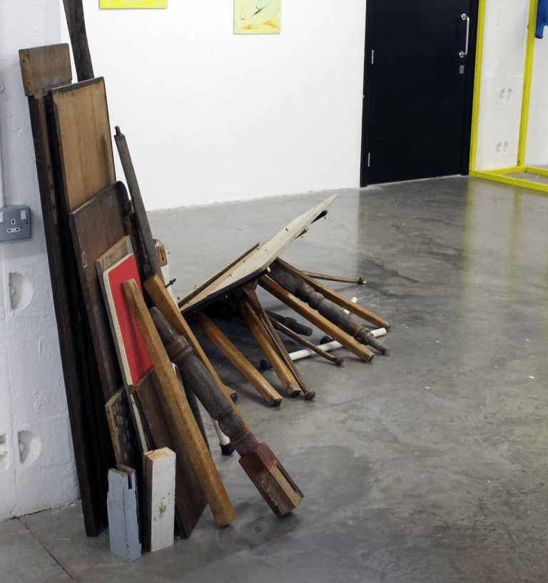 Describing her award-winning work, Clare says Until We Get There is a “rather ungainly assembly of old wood from my parents shed, existing in the gap between function and sculpture”.
