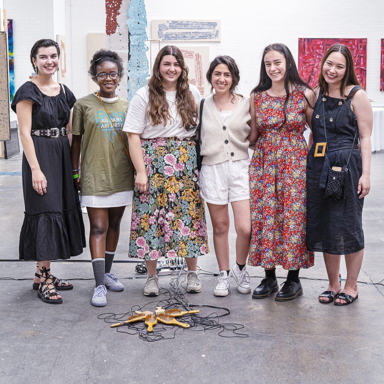 This performance, 100 Brushes, is based on female sisterhood, our collaborative group name is Thiasos, which is from Greek mythology. Our work stemmed from ideas and research from mythology.