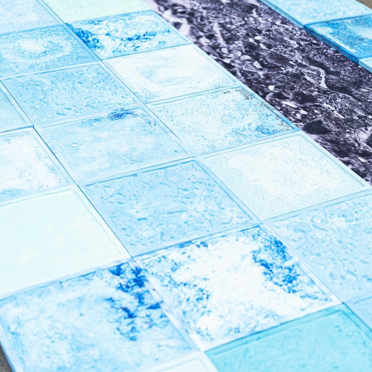Rathamanoon: For my work I looked at the human connection to the world, anthropocene. I have played around with materials and tried to create an intervention between our relationship between the planet and the environment. So, what I have done with my work is created these tiles and people are able to walk on top of them to destroy them, and that activates the work. This then makes the audience a participant to the anthropocene.