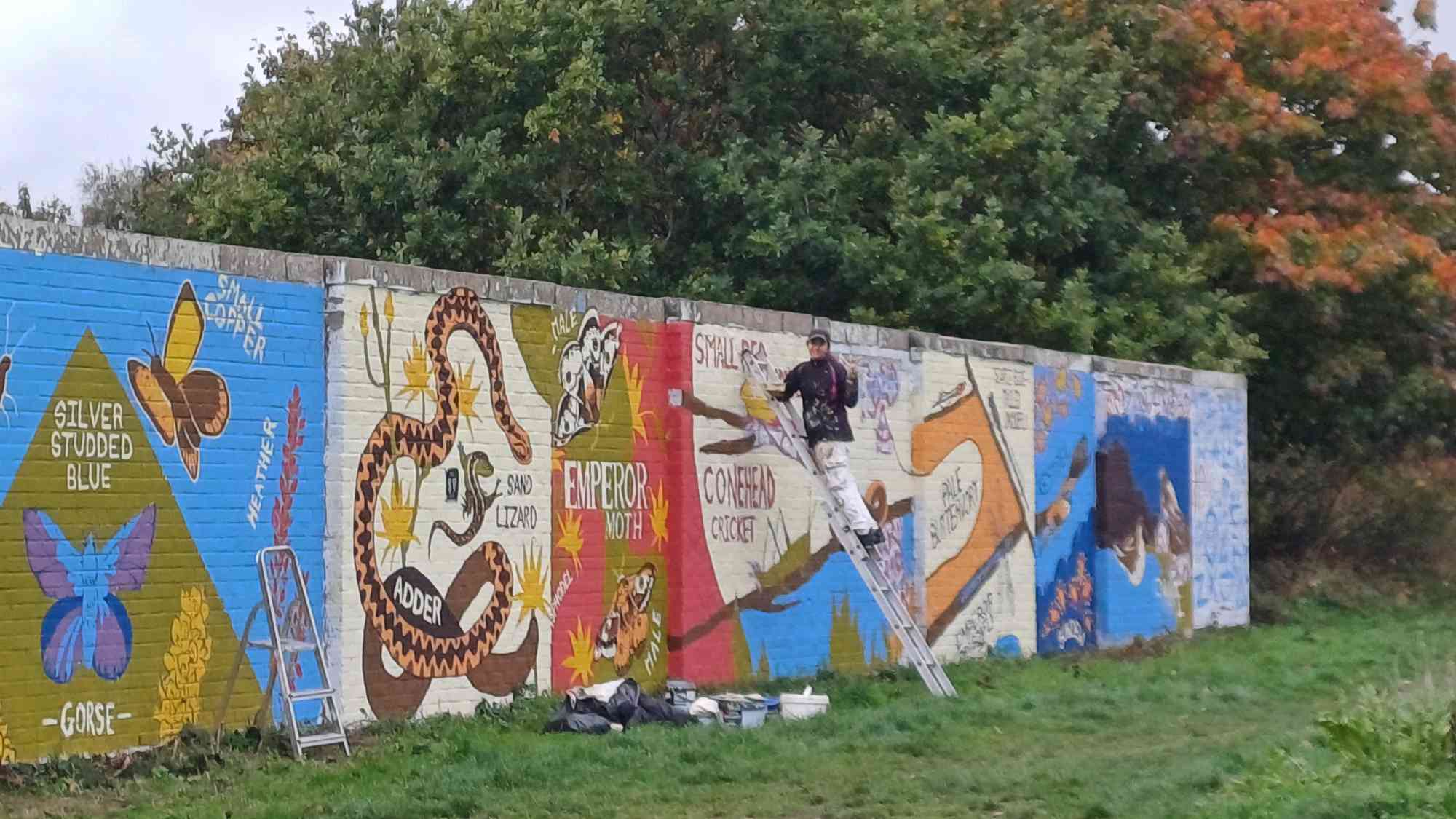 The students volunteered their time to design and paint the mural, drawing inspiration from visits to heathlands and conservations in the area with heathland ranger, Matt Langsford.