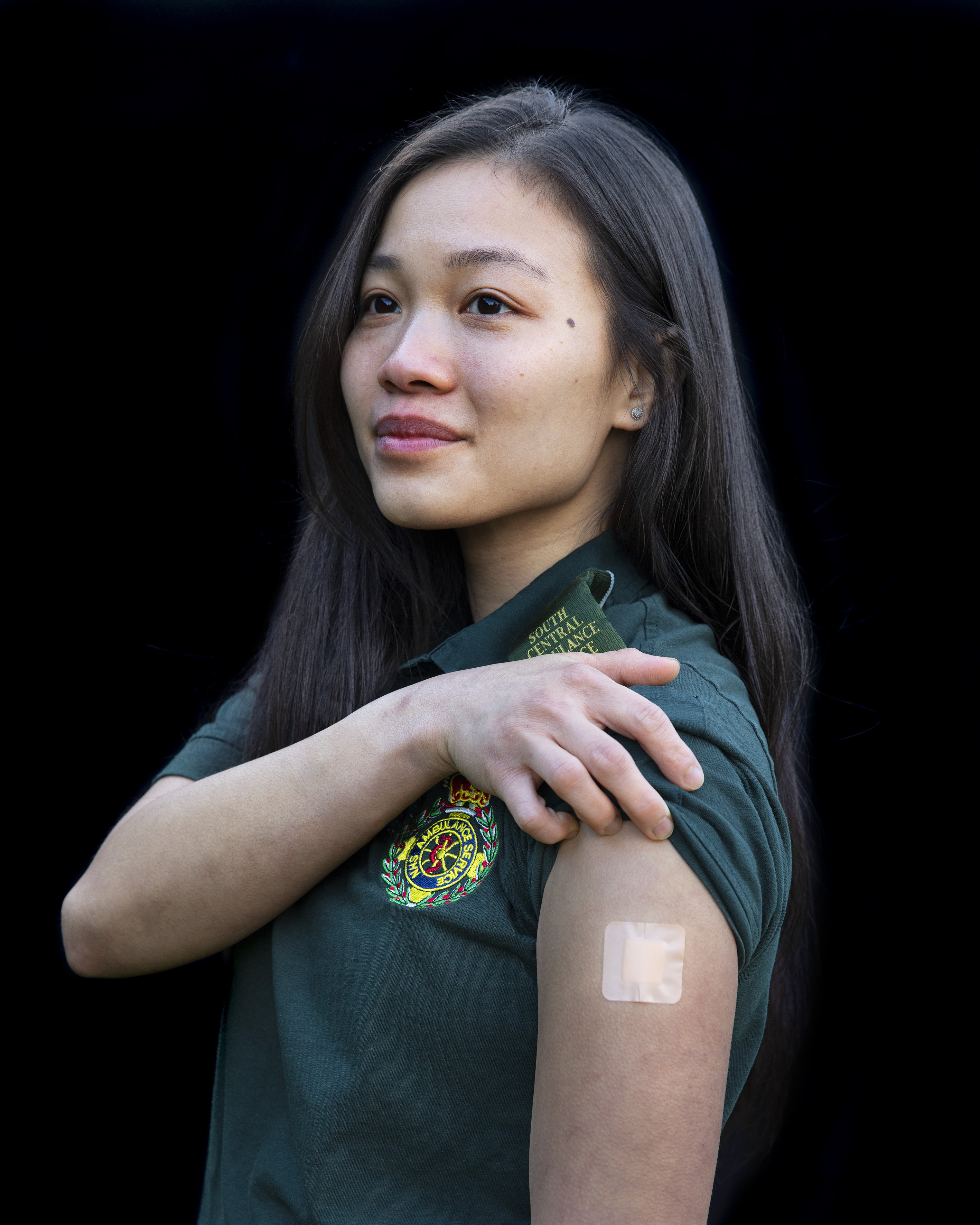 The award-winning professional photographer worked collaboratively with his wife, fellow photographer Anita Clark, and the duo initially found it hard to find willing participants for the project. However, as the vaccine rollout progressed, more participants decided to take part, and the series started to capture a wide scope of volunteers from across society; including a paramedic, teacher, bookkeeper and retail assistant.
