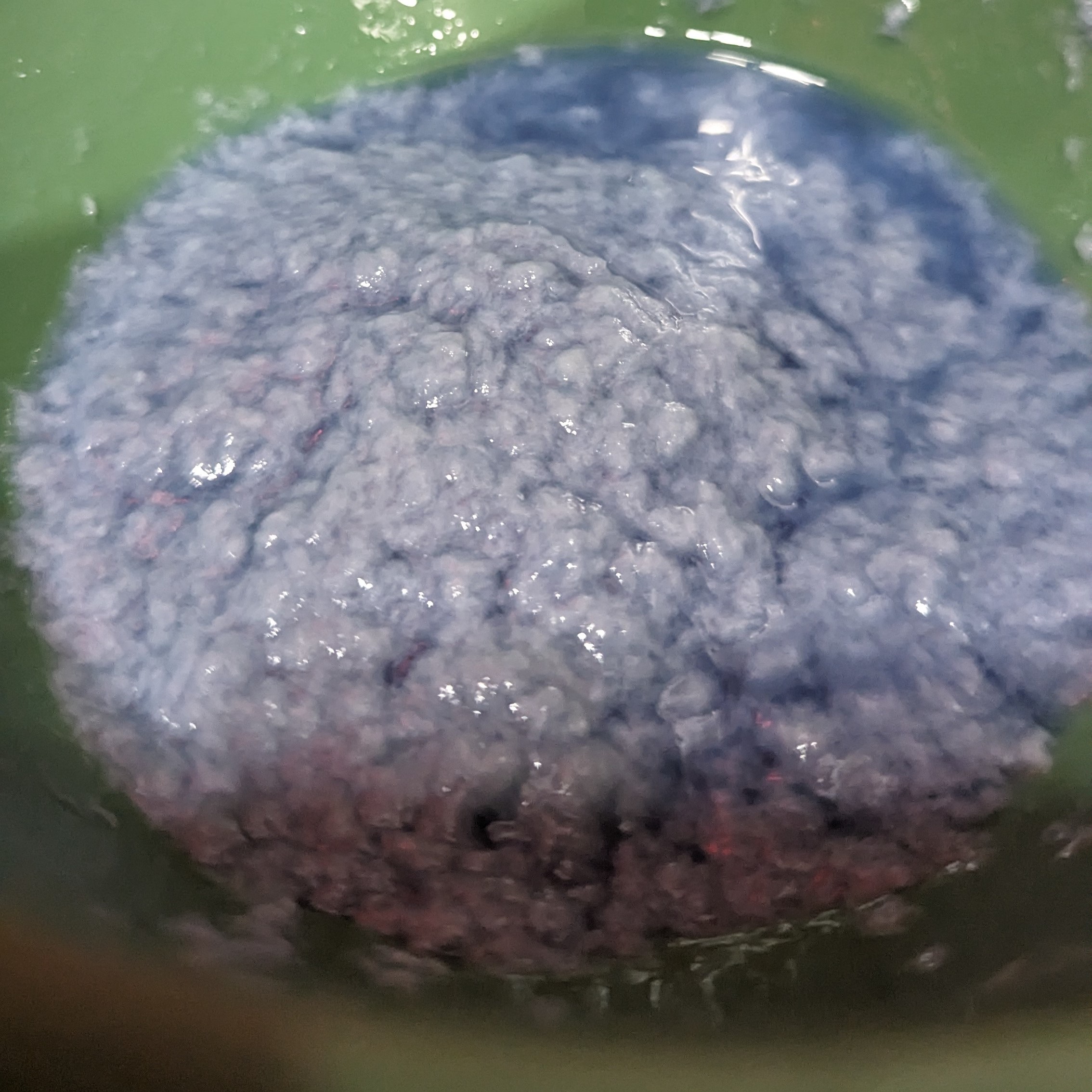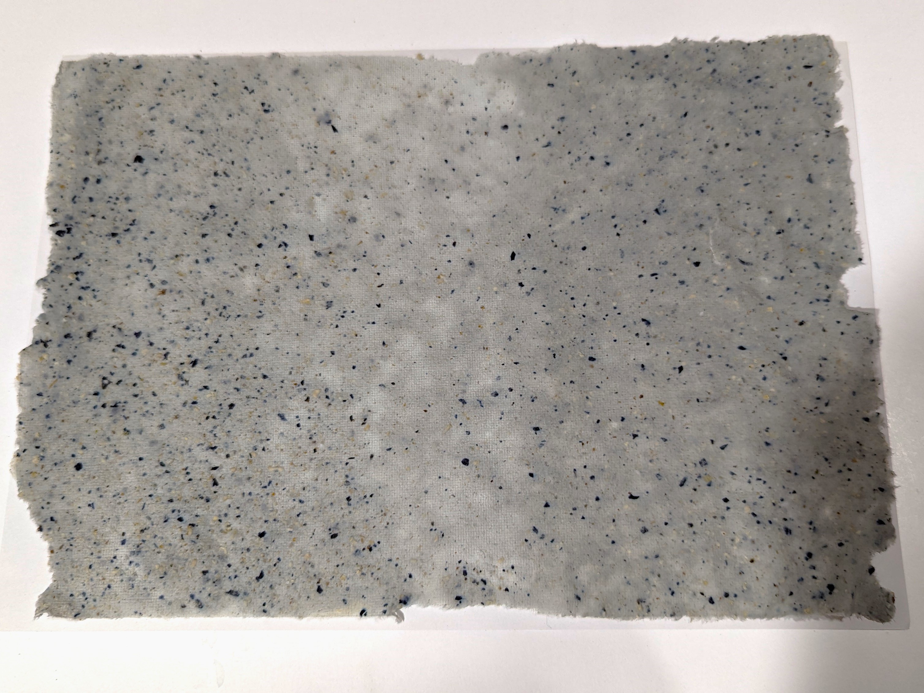 The deckle and frame were gently dipped into the vat to get an even coating. This technique was carried out several times until I achieved the desired thickness for the paper. The deckle was then transferred to a cloth and the excess water was removed with the help of a sponge. Finally, the deckle was gently lifted to reveal a fresh sheet of paper.