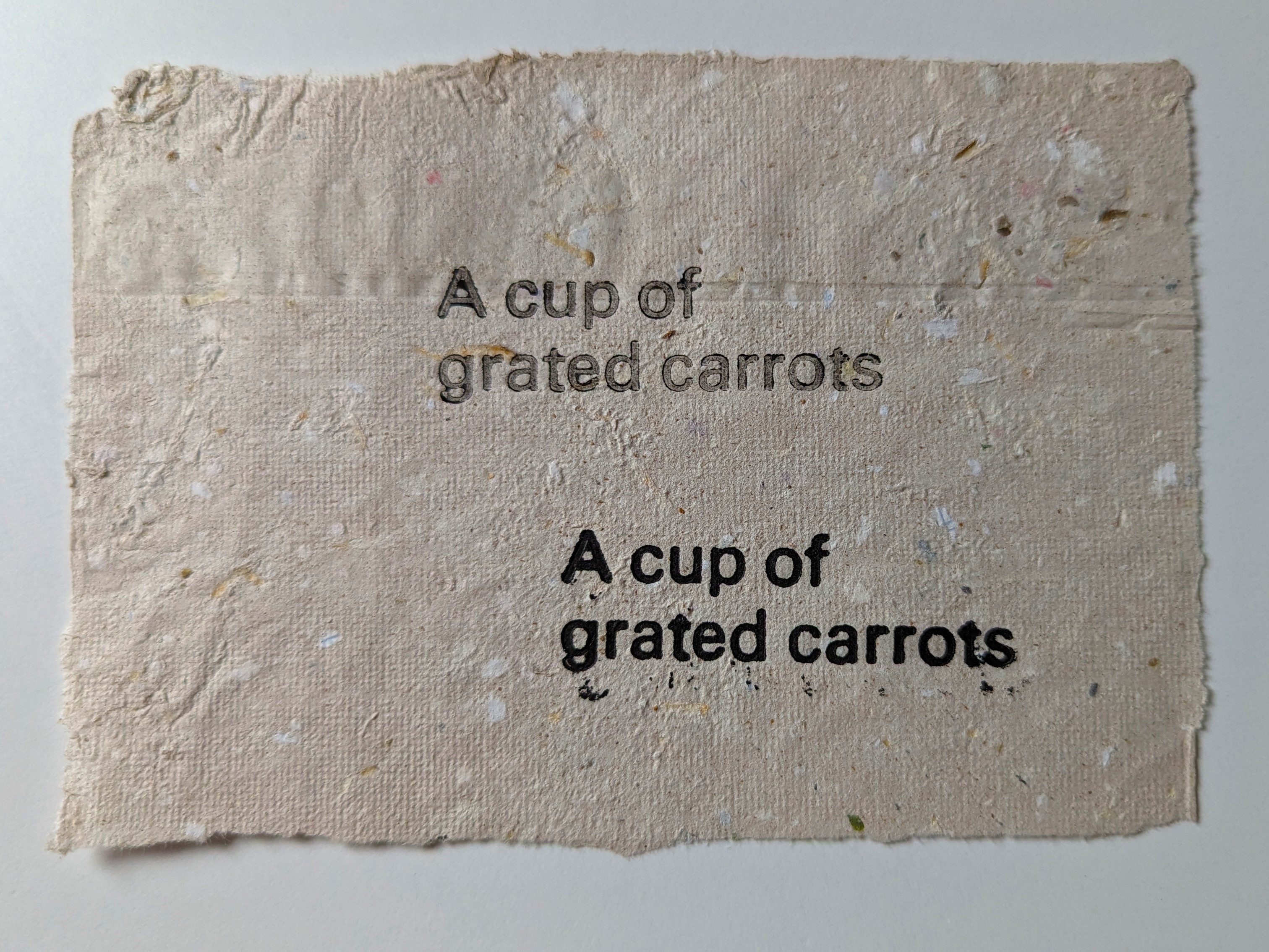 Inspired by this success, I dove into experimenting with different natural ingredients that could be mixed with my pulp. First up was a bunch of fresh coriander – the paper turned out wonderfully fragrant, with a subtle green hue. Next, I swapped in carrots for their vibrant orange punch. They weren't just for colour anymore – they added a delightful bit of texture as well.