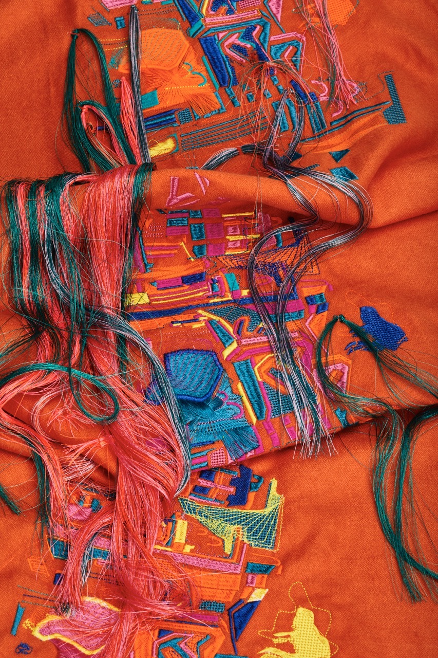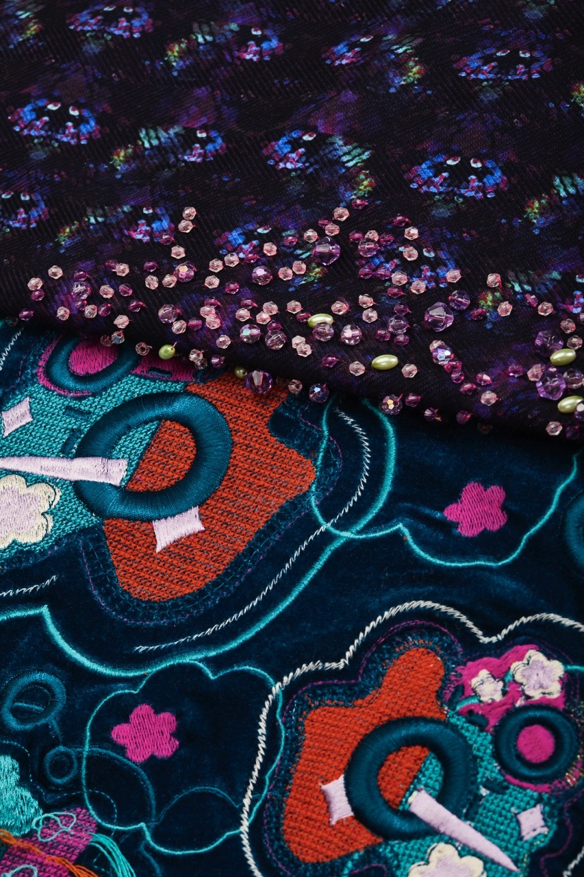 Though textile practice is not limited to soft surfaces and delicate embroidery, this is what initially drew me to the specialism, and is what I primarily enjoy creating. I would say that I am driven by a desire to create beautiful fashion fabrics, and I am generally inspired by colour, surface feel, and surface quality.