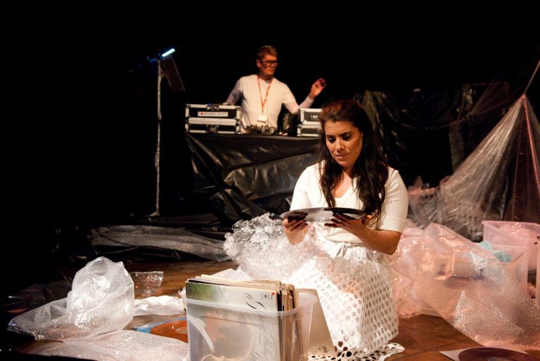 The performance, which features music made with plastic objects, is presented as a fractured narrative performed by Canadian soprano, Brittany Soriano, virtuoso trumpet player, Elaine Close, and underlaid with live turntable grooves from Bristol DJ, Ole Rudd.