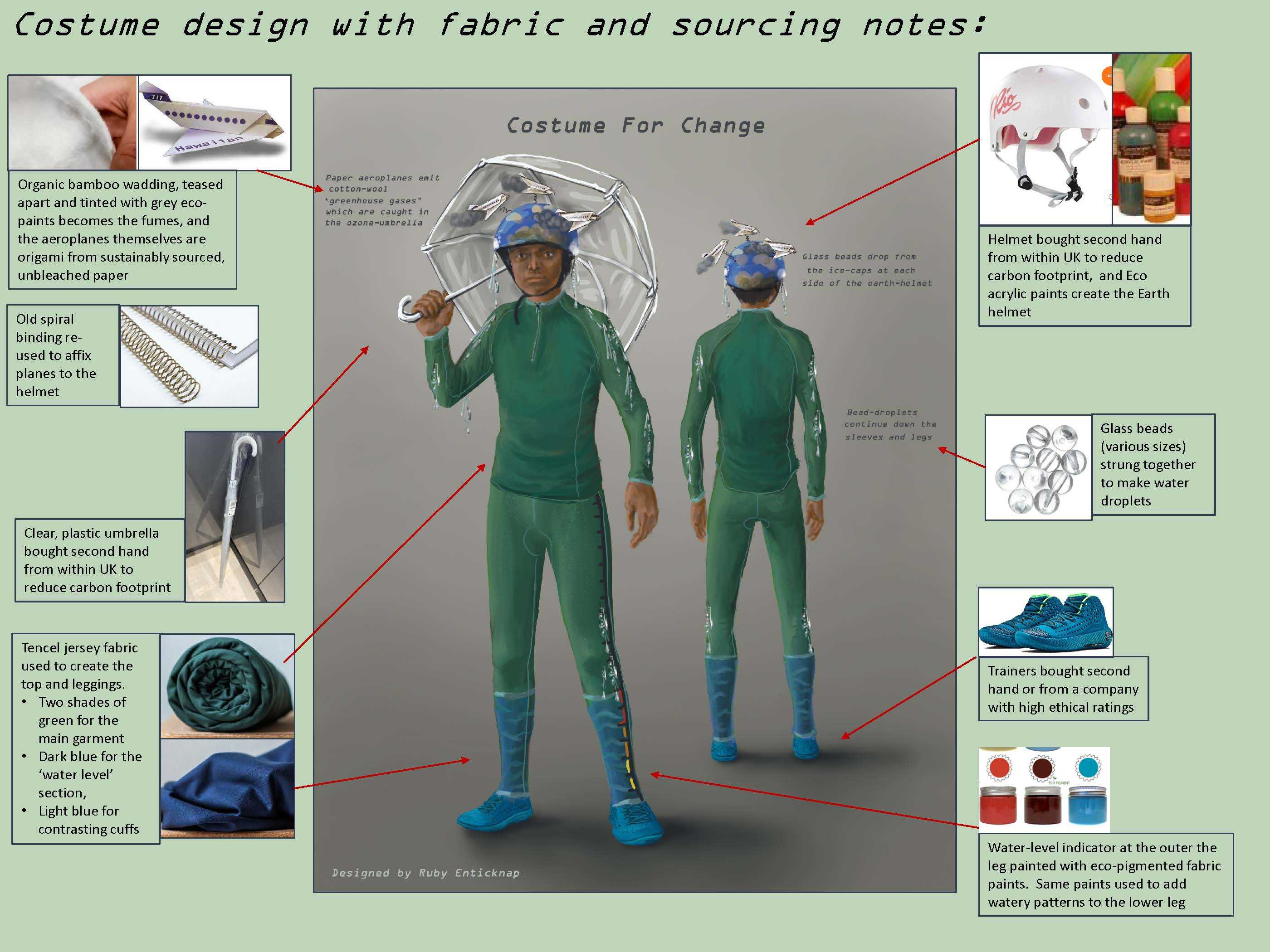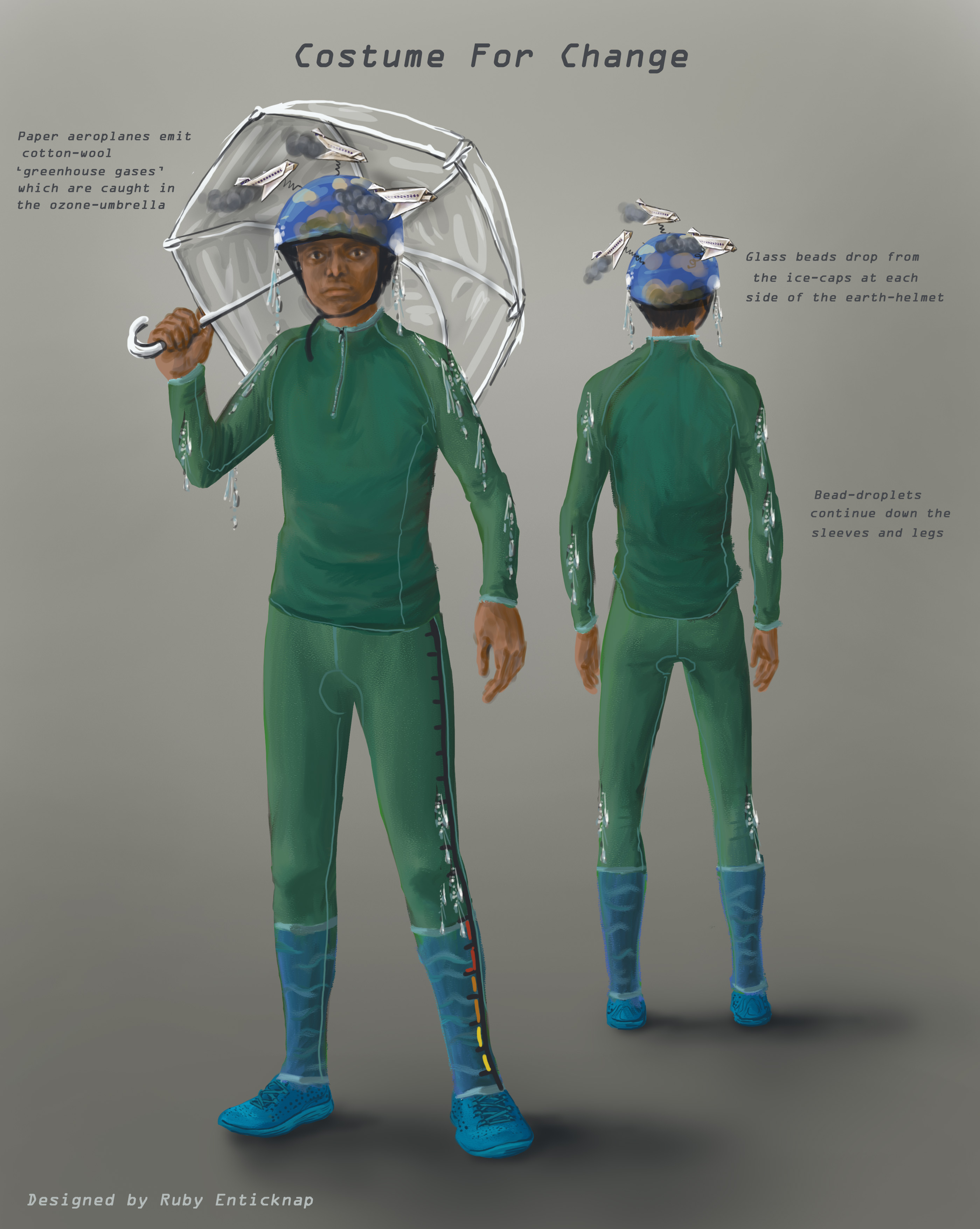 Ruby expresses her concerns: “Looking after the world around us is extremely important to me, especially in the present climate crisis. I was drawn to this project as an opportunity to directly comment on climate change through my chosen medium of costume design, and to raise awareness of how our choices affect the whole planet.”