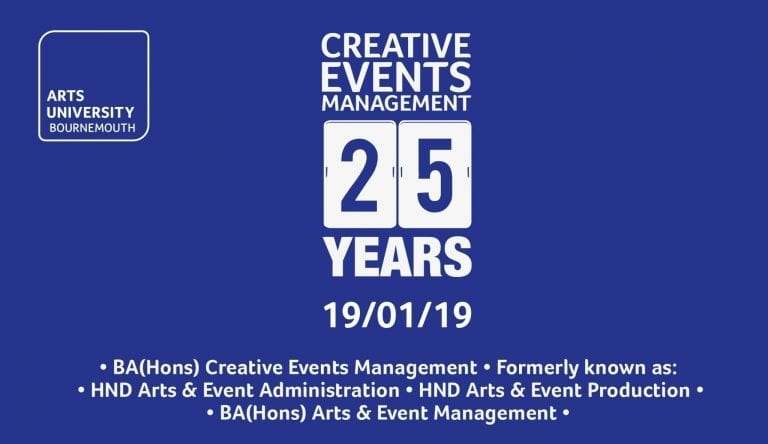 BA (Hons) Creative Events Management is celebrating its 25th anniversary in January 2019 and will be marking the occasion with a celebration which will reunite staff and alumni, past and present.