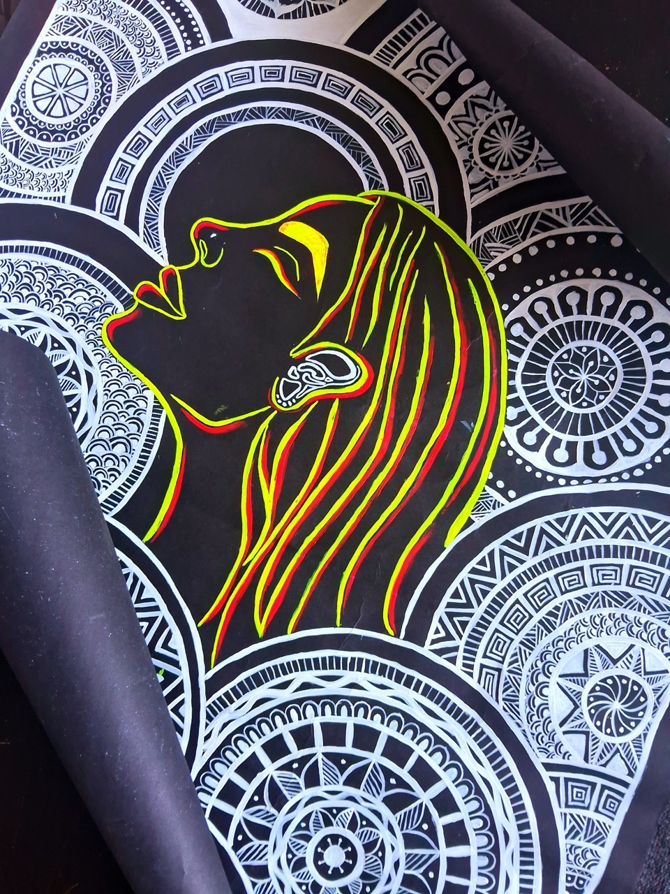 Having recently left home and moved continents away, I felt a sense of disconnection that I knew many others would relate to. This work became a visual metaphor for my own journey – holding onto my cultural identity and values while embracing new experiences and environments.