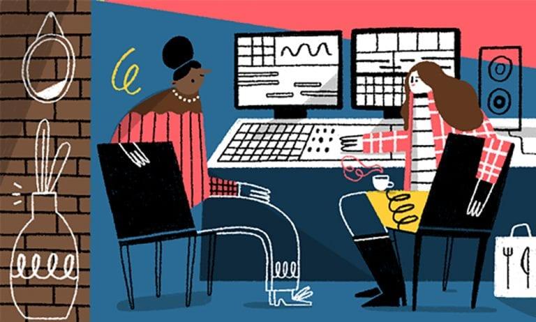 Our morning clients have travelled from London, Brighton and abroad and are booked in around eight weeks in advance so we’re super excited to see them! We work on pre-production, and I’m on hand to co-write top-line melodies and make any structural changes. Harrison, our Head Producer, takes the reins with the engineers and recording begins!
