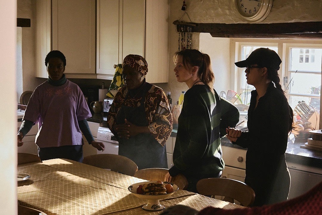 I collect inspiration from many different places, scripts, history books and the world around me. It varies for each project. When designing for my grad film Ayomikun, I researched Yoruba culture as I was designing traditional dress, and it was important to get that right. Still Here was different, as I had to research a more contemporary period, based partially in 2019. I mostly did this by looking at my own photos and engaging in media from this time – I even made a Spotify playlist to listen to when I was working.