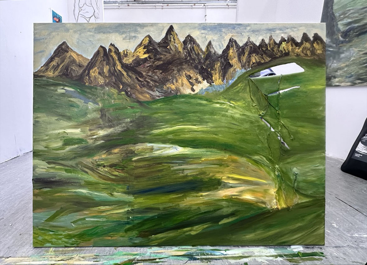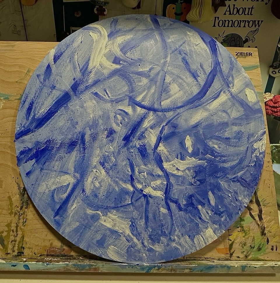 I haven’t found friends to collaborate with me yet, as the majority of my friends are studying BA (Hons) Illustration and busy with their own projects. However, they have given me lots of emerging ideas about what I could create when I’ve asked them. I collaborated with nature this year in order to create my portfolios. I plan to collaborate with the sea more to make even more emotional abstract pieces than what I have made this year. I have ambitions to make a painting that covers my studio wall, full of brushstrokes, colours and mysterious patterns.