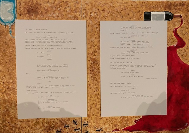 My creative process often begins with a question. Sometimes it’s a question circulating within my unspoken thoughts; others, it’s a product of a two-hour coffee date with a friend. Questions could be as specific as ‘How might a wall of physical separation inform the conversational dynamic between two strangers?’ or as broad as ‘What does it mean to be a “bad person”?’ Often the concept will naturally steer away from the question once I begin writing it. This is something I embrace and believe to be a healthy and interesting part of the process, especially when directed by the organic development of characters.