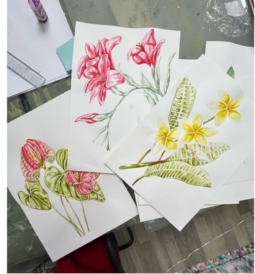 We have also been encouraged to go out and gain industry experience for ourselves. In the summer of 2024, I completed a six-week placement at a renowned fashion design studio in London. This gave me a chance to obtain a deeper understanding of the industry and help make informed choices on which area of the textiles world I can see myself in. The opportunity also gave me lots of drawing practice and largely improved my skill set.