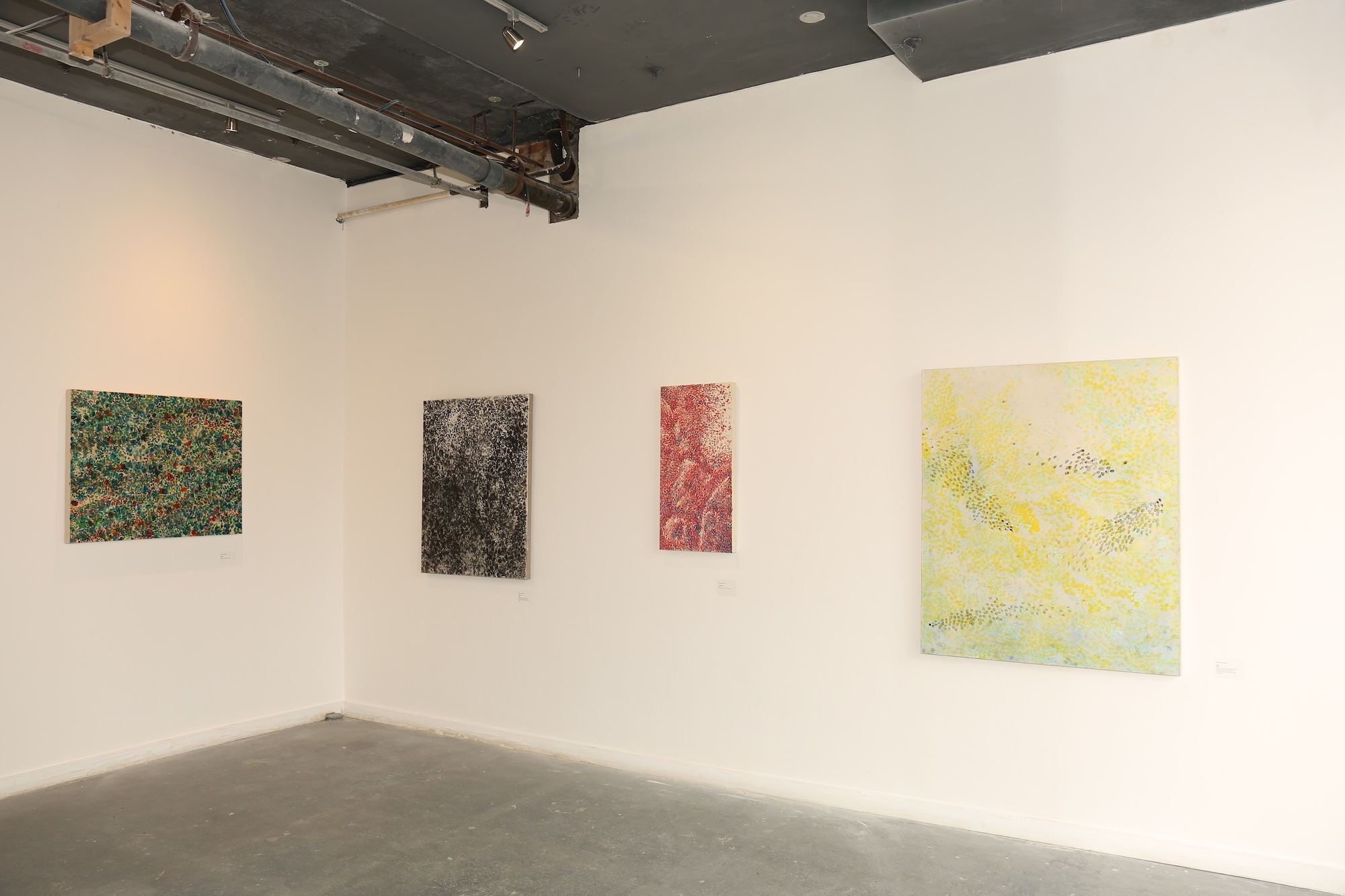 The paintings are made based on drawing practice conducted during Sayoko’s artist residency at Sandy Hill Arts in 2024. The residency experiences led her to discover intervals, Ma, in nature for harmony with human beings, and later to explore a transient moment occurring in each gap, Ma, between dots and beyond in painting practice.