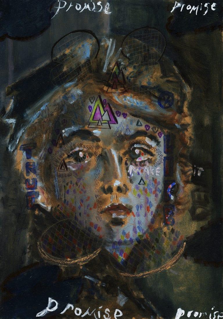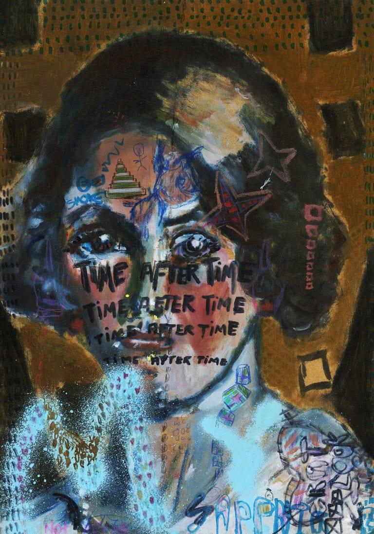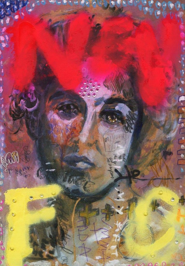 “This exhibition consists of recent portraits, where Jackson has continued to evolve his practice by either upscaling or adding new visual components. Extra layers of complexity have been introduced including patterning; collage; a broadening of palette; experimenting with new techniques such as fat cap spray painting; and mark making with a router. The result is compelling paintings that express the inherent urgency of the artist.” – Zavier Ellis, Director of Charlie Smith Gallery, London.