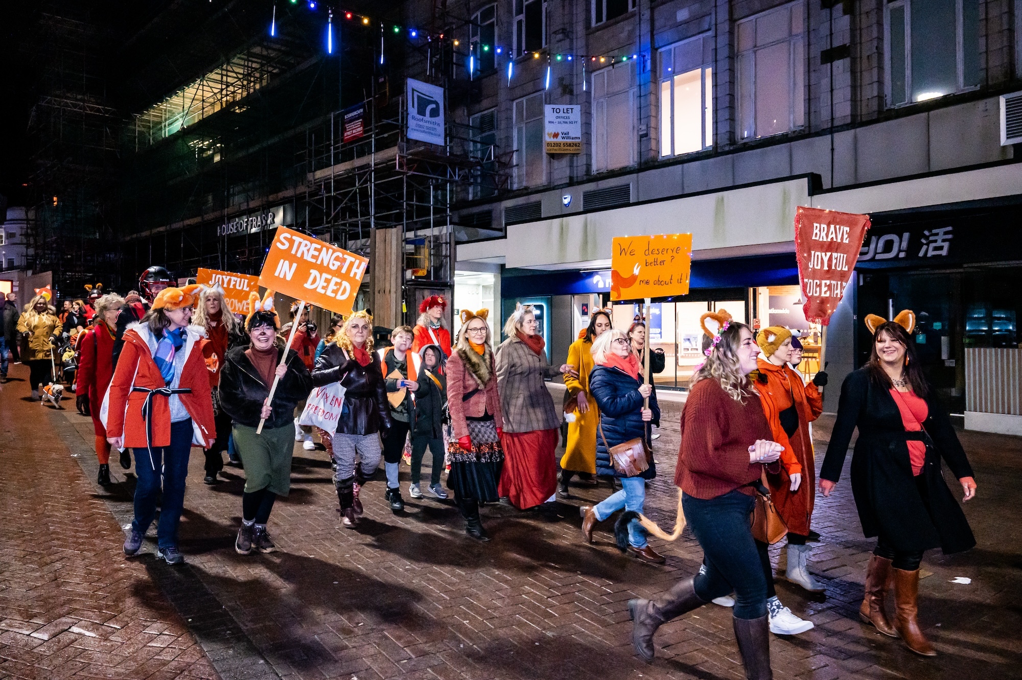 The streets of Bournemouth came alive on the evening of Friday 29 November as nearly 200 strutters, adorned in radiant orange attire and creative fox-inspired costumes, took to the town centre for FOXSTRUT 2024.