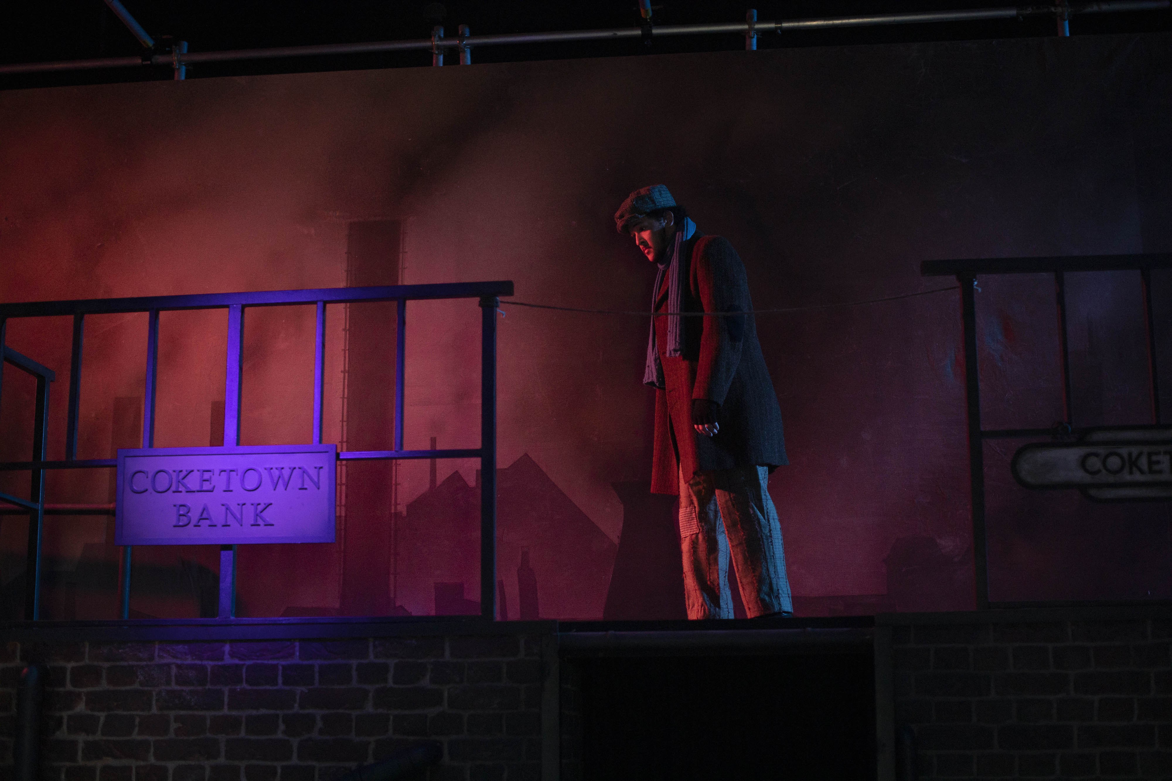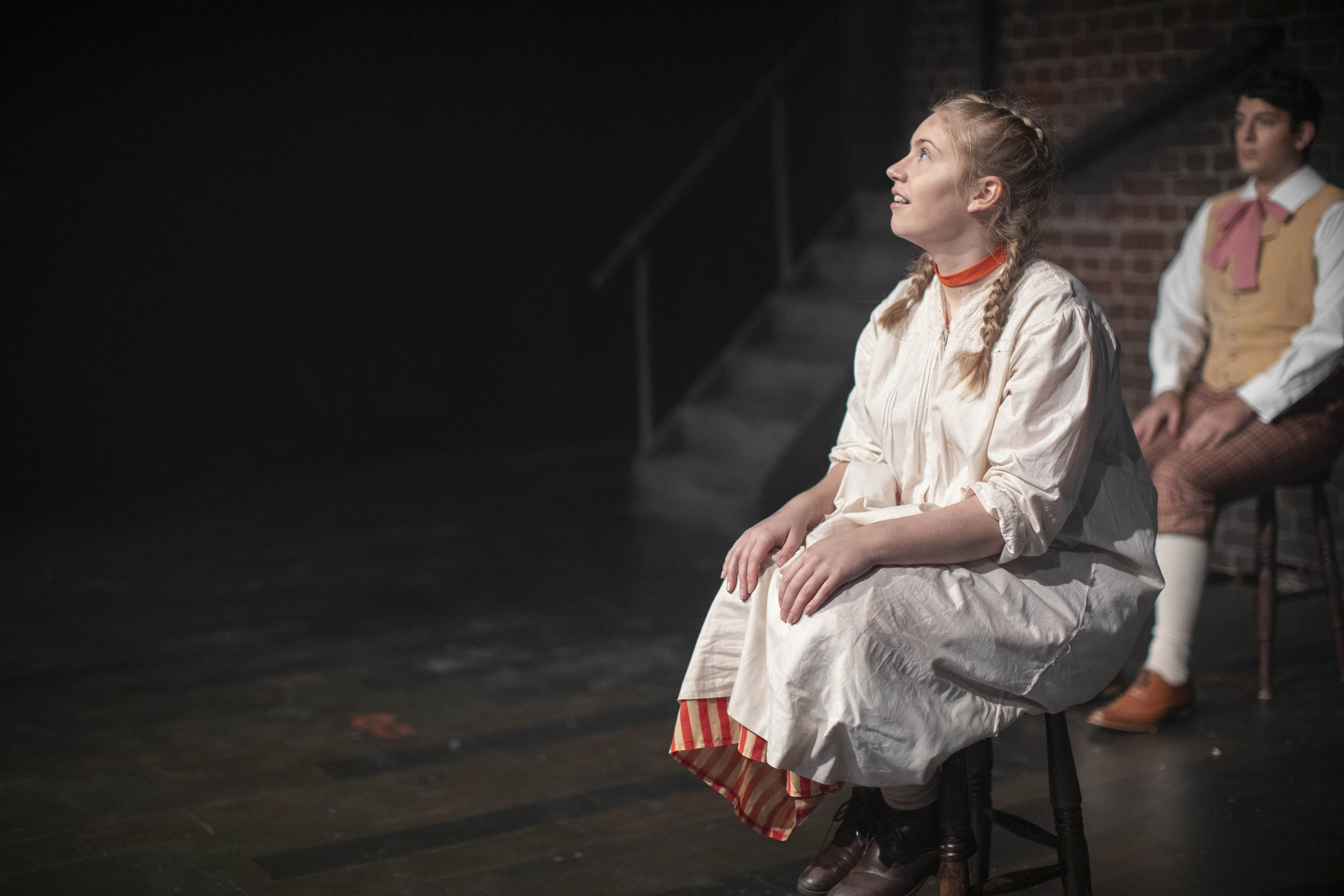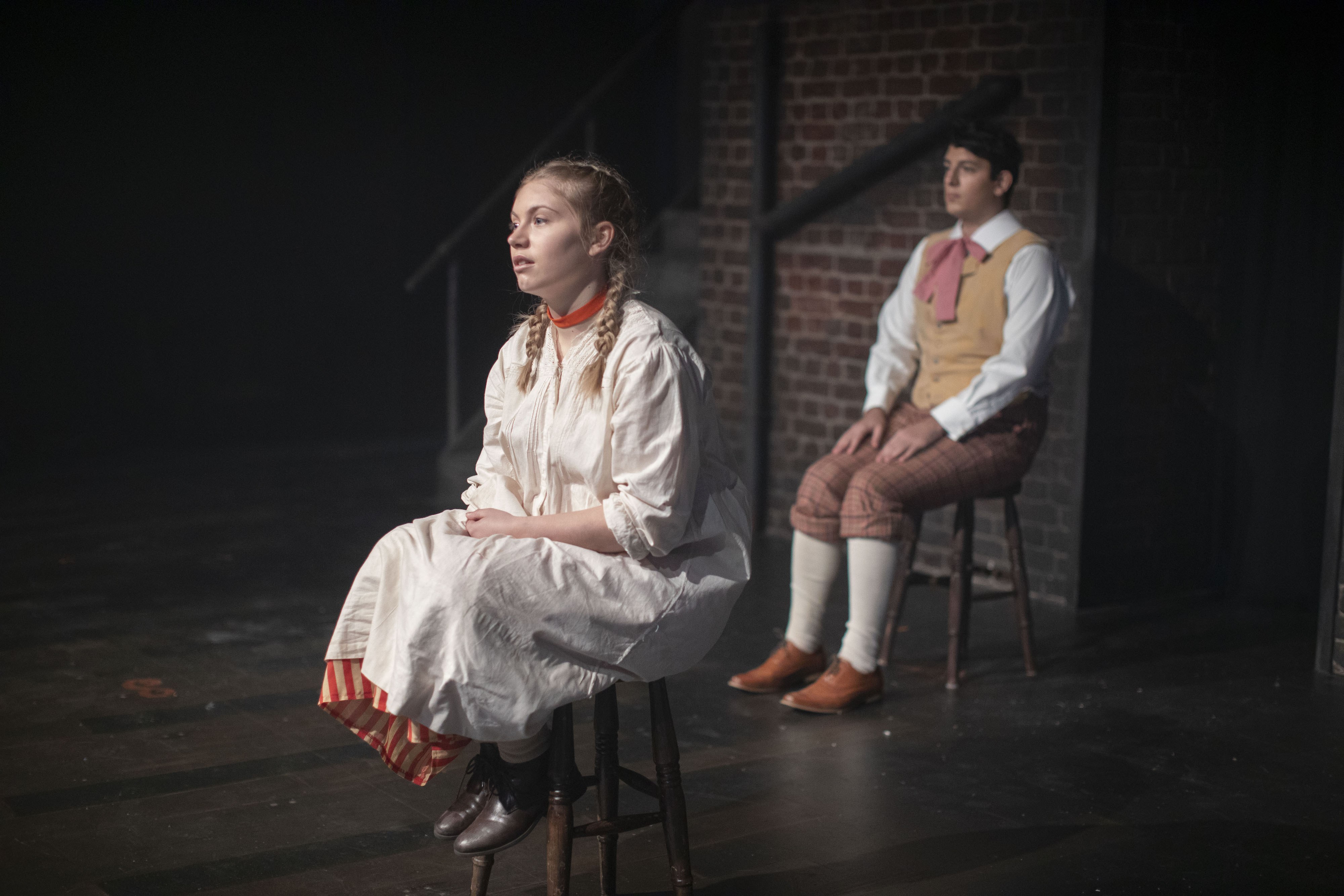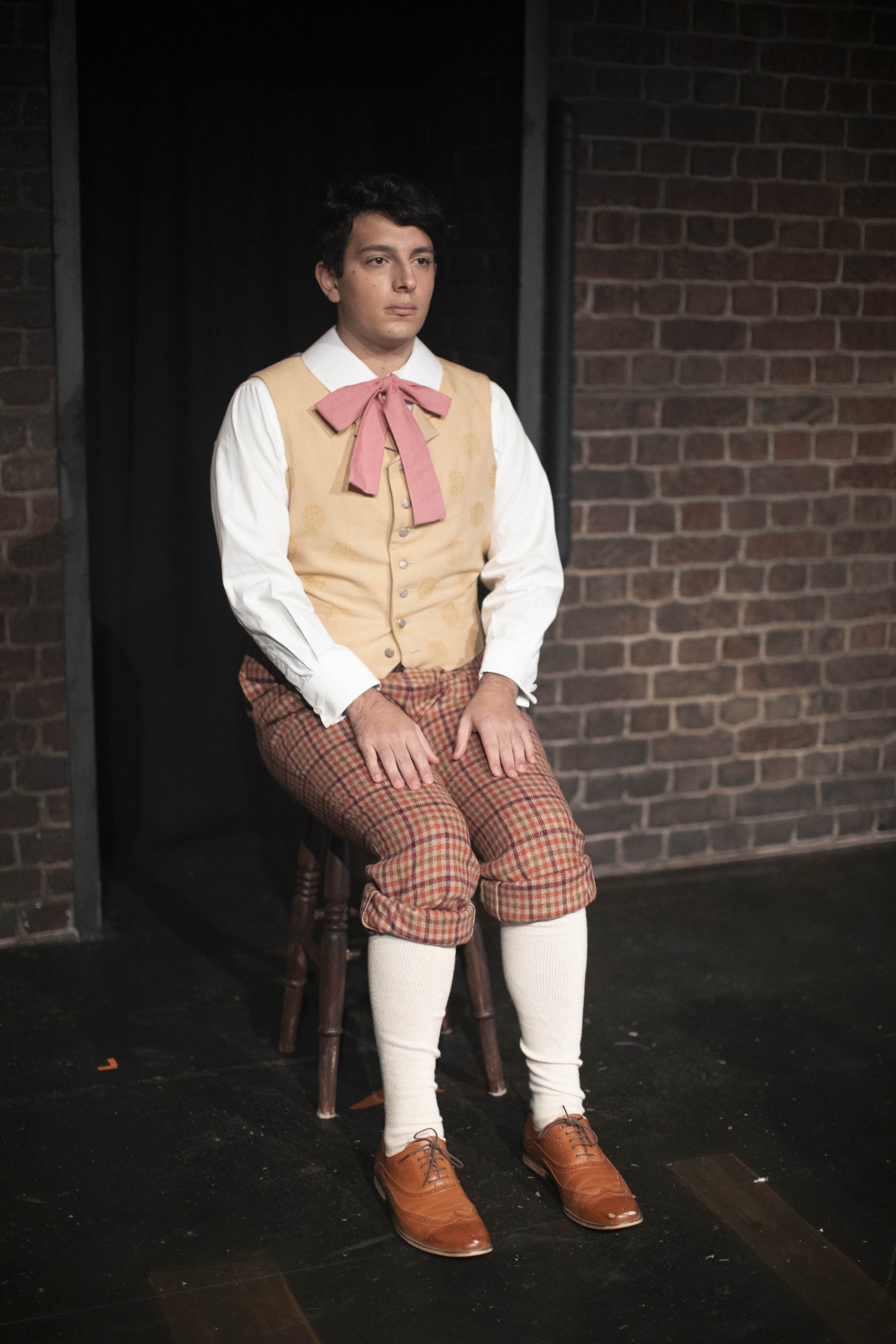 The cast spent two weeks on zoom rehearsals for this epic piece. We explored the themes and characters and then actually blocked the play utilising technical drawings of the set and numbers placed strategically around it. We then went into the rehearsal room for six days and put it up on its feet. Three days of tech and dress and filming followed. The result is a filmed dress rehearsal, as this is where we got up to before we were required to end face-to-face teaching, as part of the government’s request for a staggered departure of students by 9 December.
