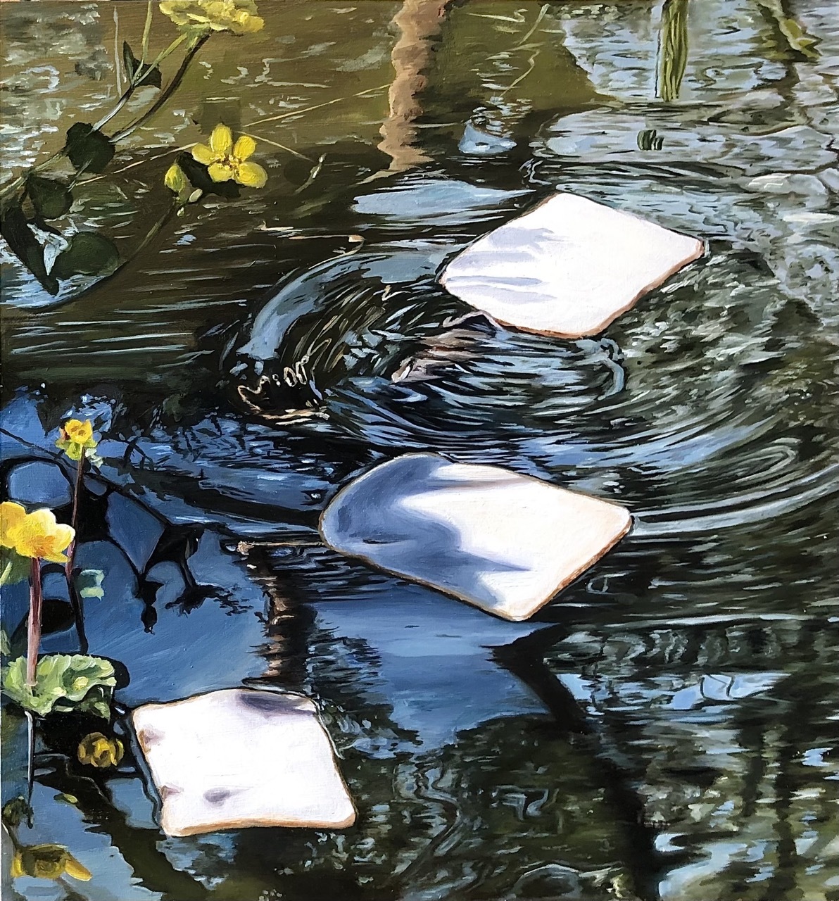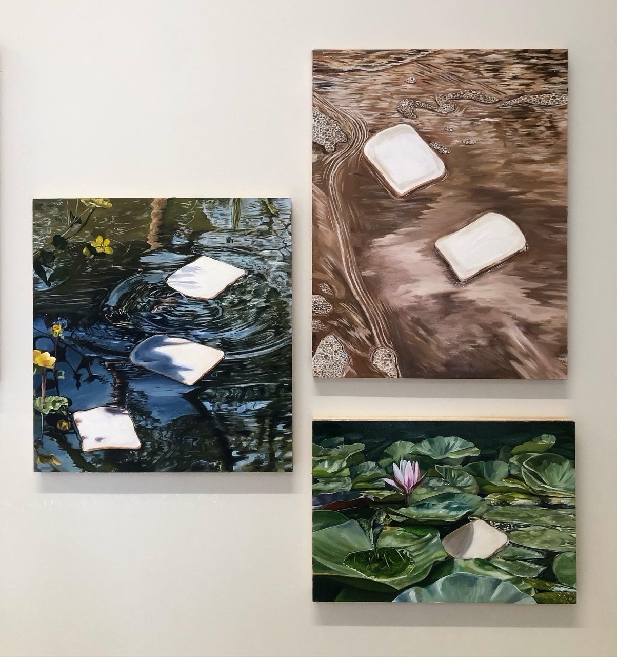 Many of my water paintings are inspired by old photographs from my experiences and explore the power of memory as a cognitive function and its use when creating a painting. Water in particular has been known to hold memory and has many connections with the human body. This project has been heavily research-based and is a physical display of my interest in water. Now working towards my final unit, I’m able to continue exploring my interest in water and use what I’ve learned to create a formal exhibition piece.
