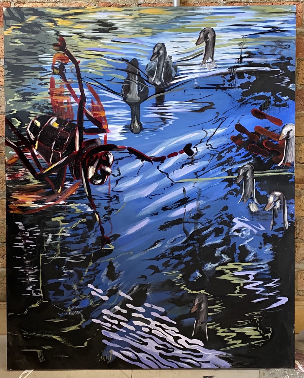 I've always been drawn to water, comforted by the shapes and sounds it makes and by the impermanence of its reflection. AUB being by the sea was actually one of the reasons I applied for the course. Water is notoriously a difficult subject to paint because of the details and movement, but I find myself enjoying this challenge, attempting to balance mark-making and brush strokes with creating a cohesive image.