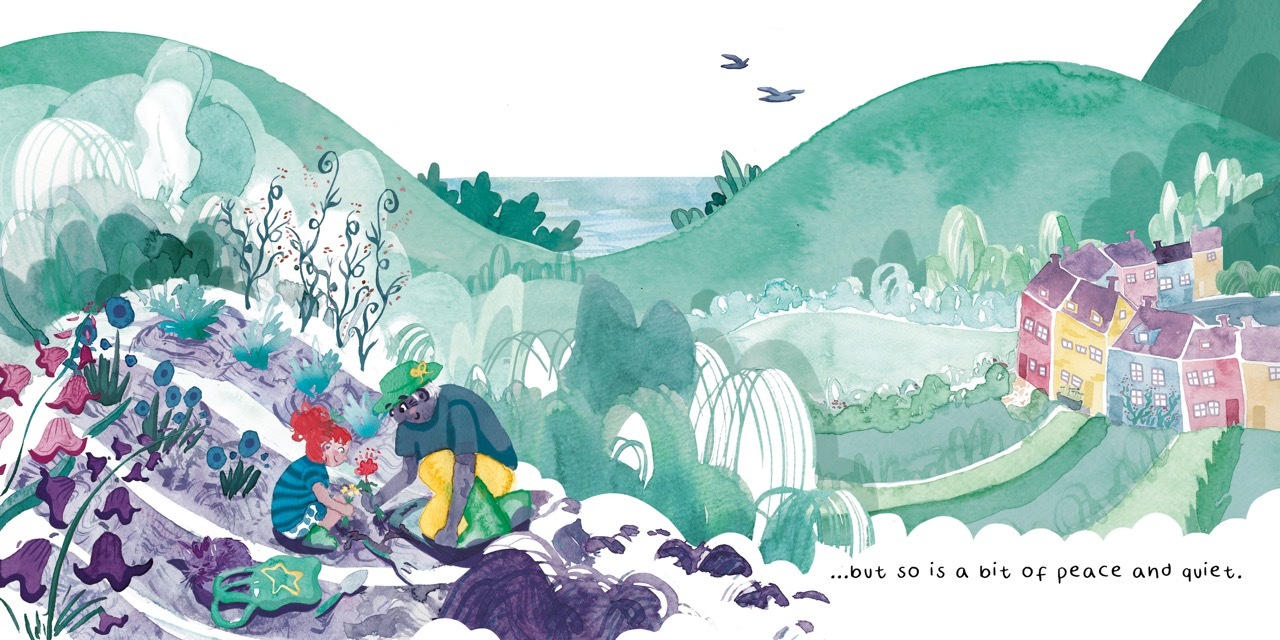 Knelt between the flowers of his seaside allotment, Lottie and her grandad plant the findings from her twisty turvy magical journey that she took to get to his house.