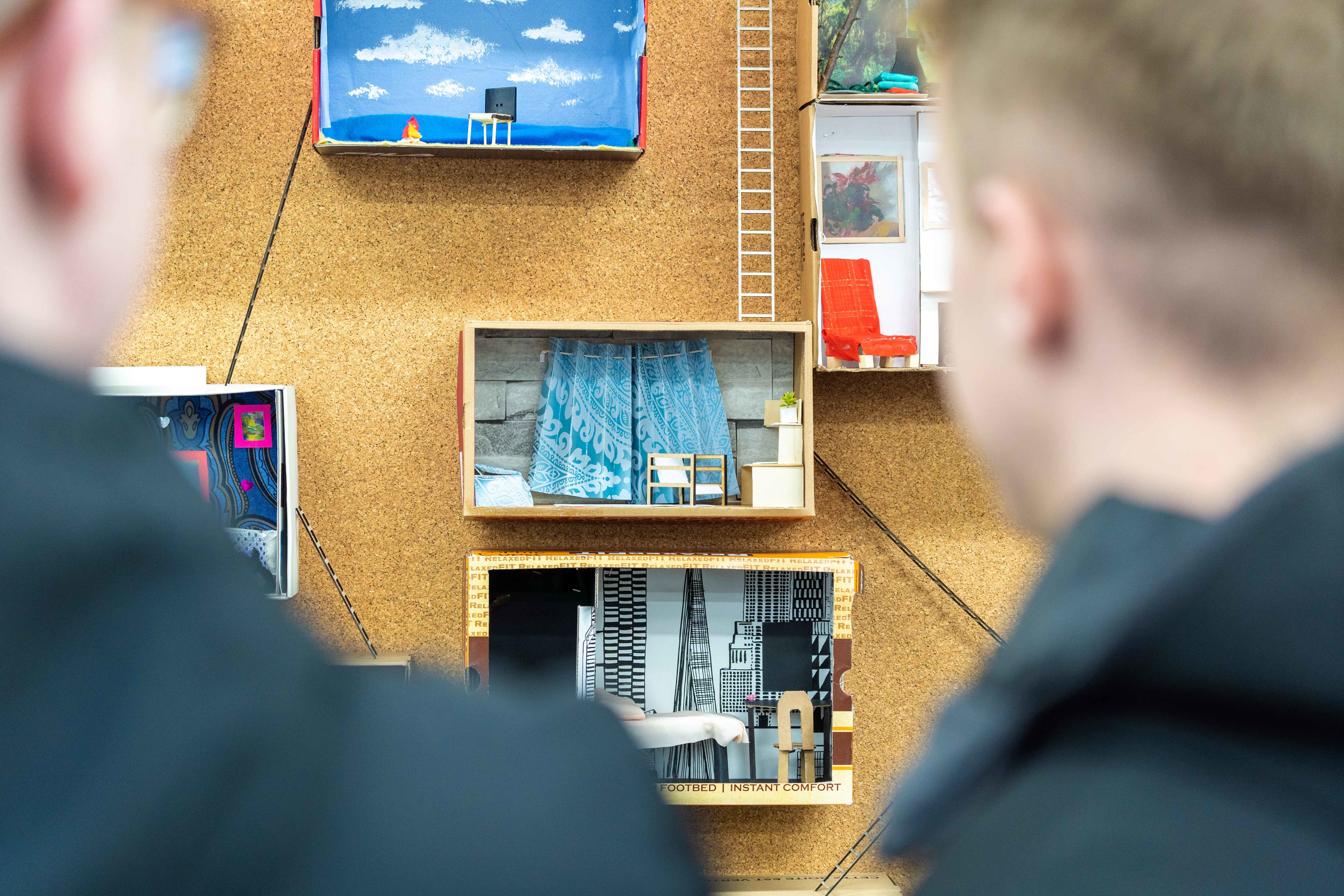 Ahead of the visit, second-year Architecture students created architectural ‘dolls house diorama’ models of spaces that best defined ‘home’, discussing the concept of belonging and seeking to understand more about the values of independence, empowerment, and privacy, acquired through property and ownership.