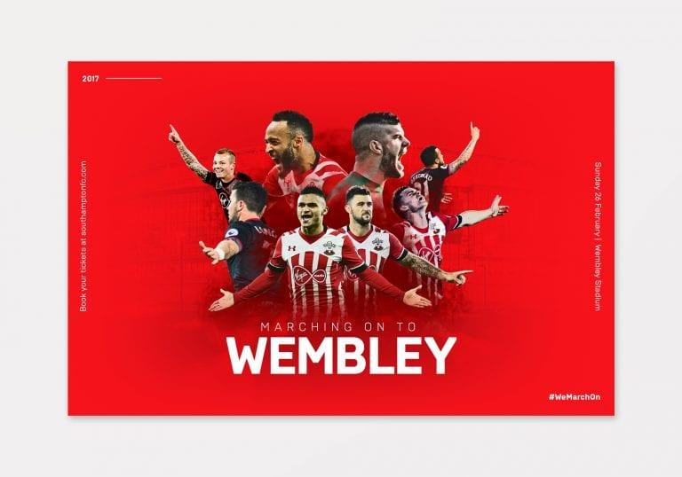 It was while working at Southampton Football Club that Jack experienced one of his proudest achievements as a designer, creating the visual campaign ‘Marching on to Wembley’, when Southampton Football Club reached the final of the EFL cup.