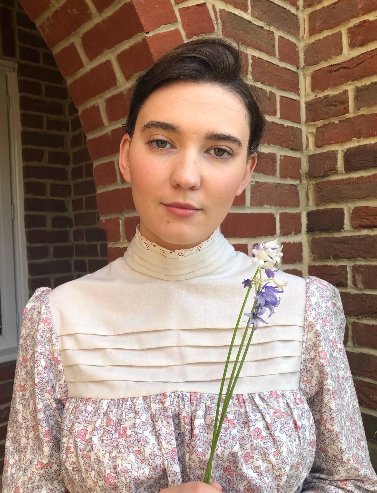 This project also showed me how creativity brings people together. As we could no longer fit costumes to our peers, I decided my sister would make the perfect model. Though she would occasionally dread fitting sessions - out of fear that I might accidently scratch her with a dress pin! - I saw her excitement as I finished each garment, and the final costume was completed. We researched hair and makeup from the 1890s together and reconstructed the quintessential look, a bright complexation with hair tied up in a Newport knot, ready for the photoshoot.