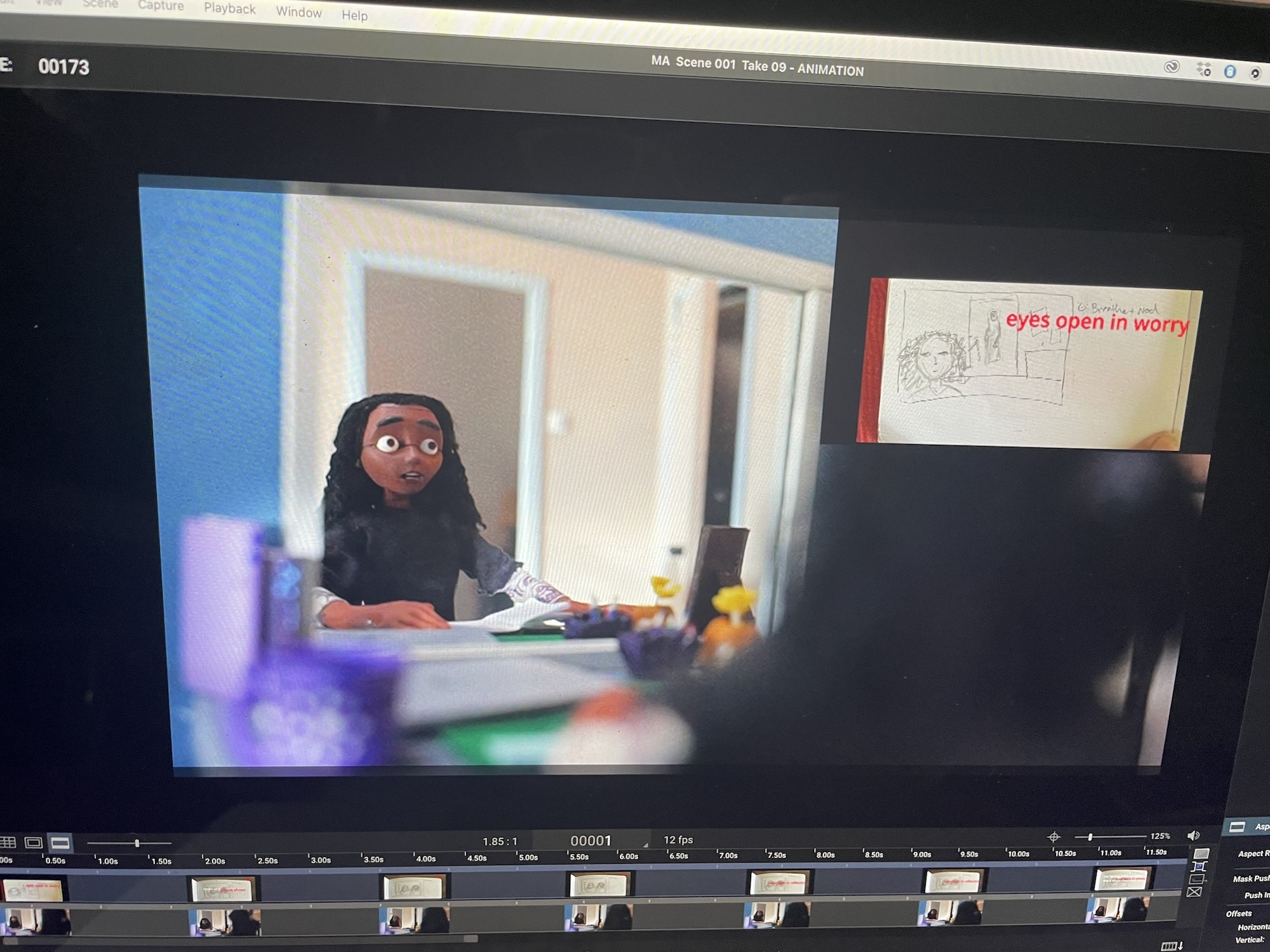 While I spent the majority of my time at AUB working on this film, some of my favourite moments during the year were when I had the opportunity to take a break from my more serious story in order to make short, silly animated pieces, which helped me develop both my animation techniques and professional portfolio. For example, I created a short film for an Aardman Academy event, which received the top award in the small competition. I also had the chance to sit in on undergraduate animation courses with Gideon Bohannon, where I created several short animation exercises in walking, dancing, and stillness. The ability to quickly create short films was inspiring and helped me become a more efficient and confident animator.