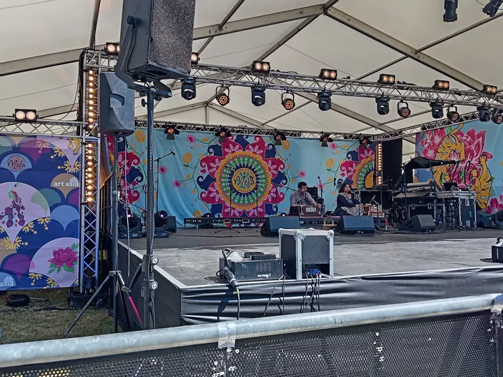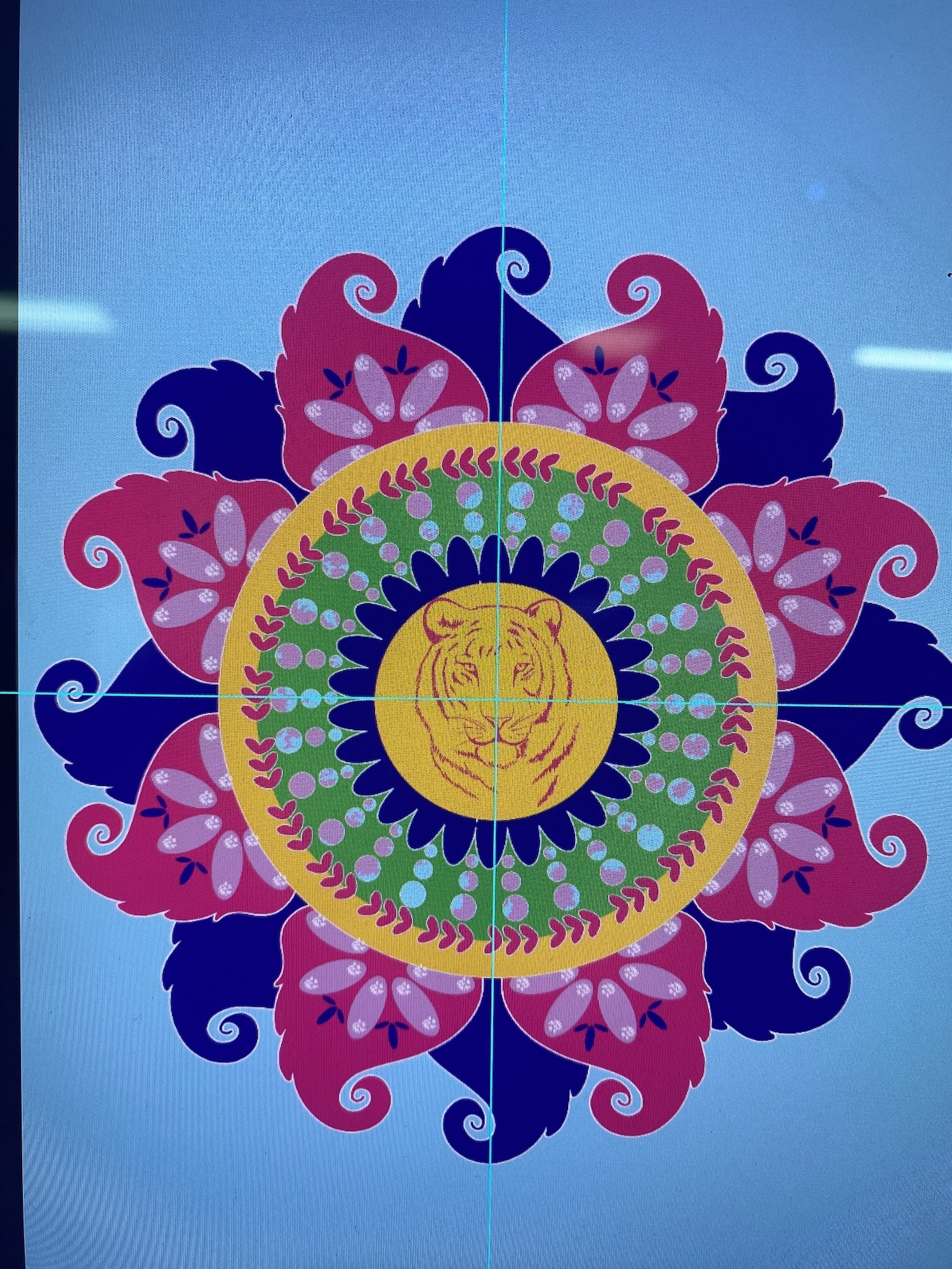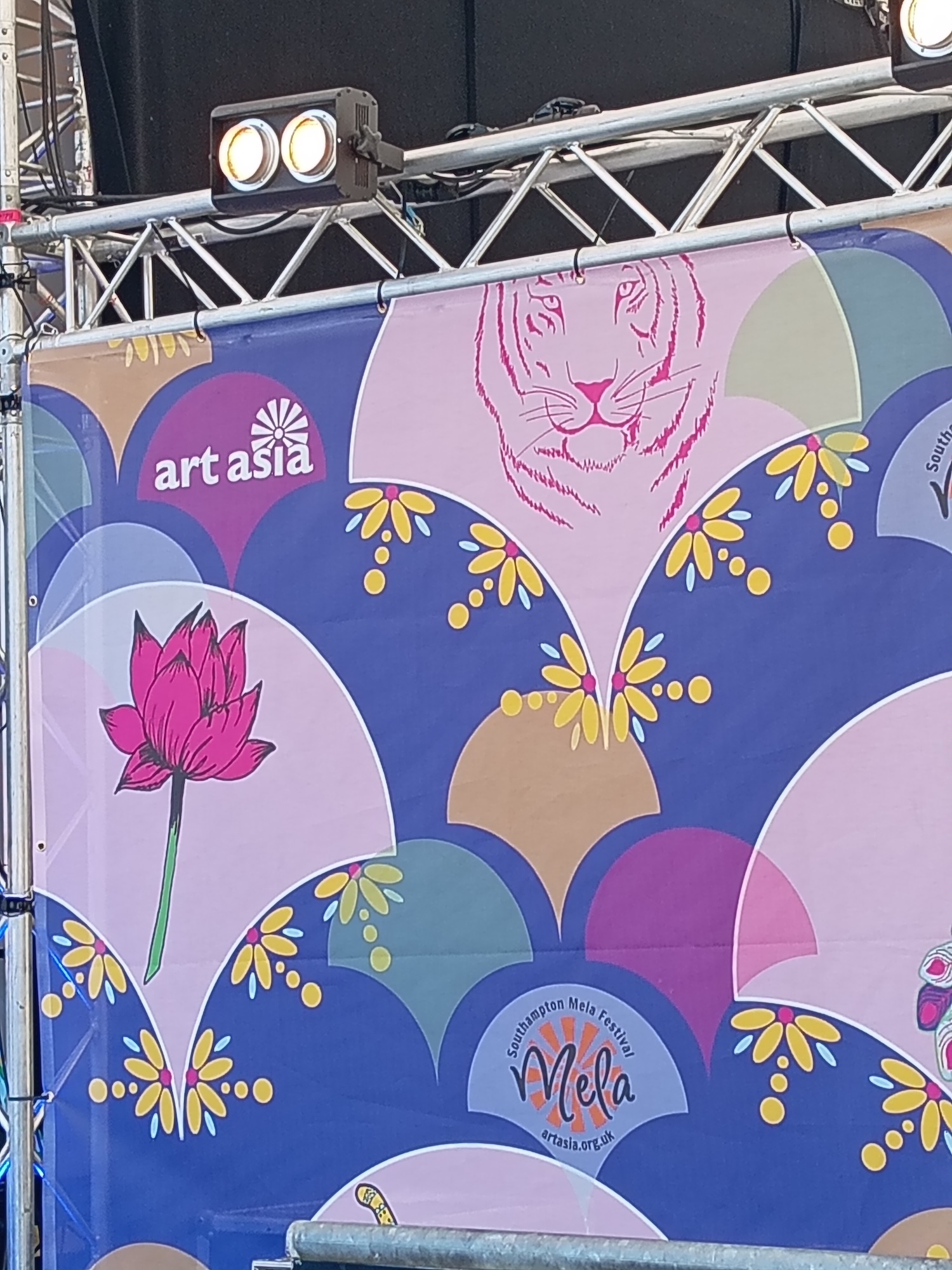 At the start of the final term, BA (Hons) Textiles Design students undertook a collaborative project with Art Asia for their annual MELA community festival in Southampton. This is an inclusive and free festival to celebrate the South Asian community. Our brief was to design stage backdrops (three different panels across the back, side and front walls) with their logo on for them to print and use.