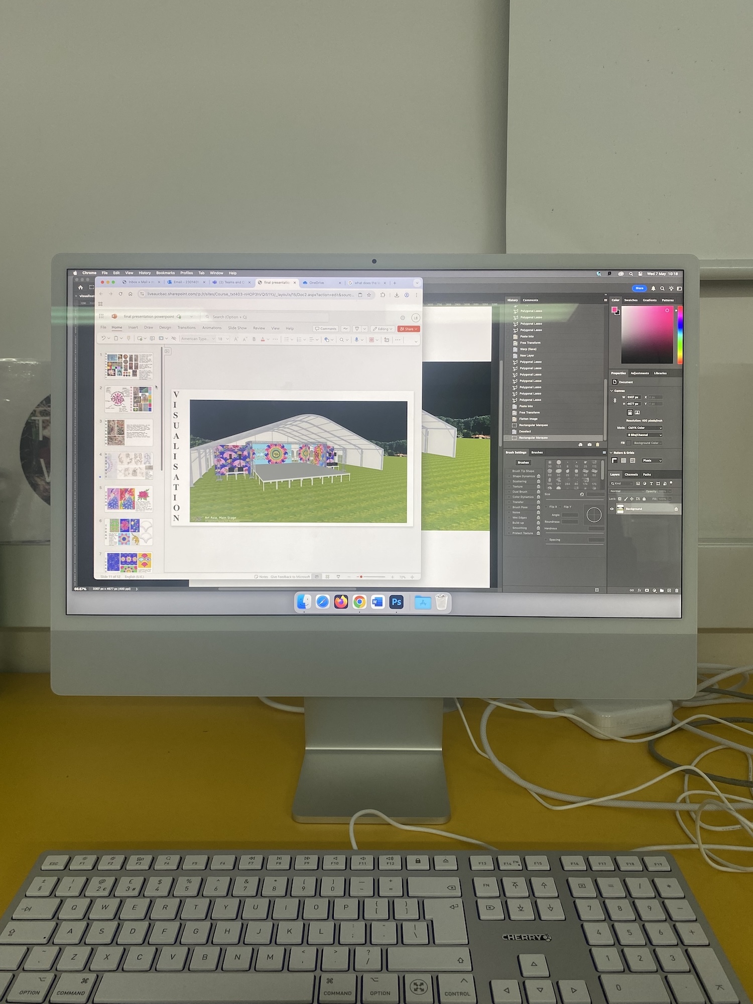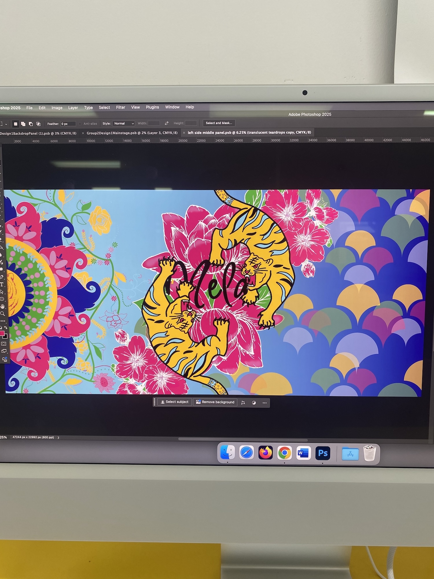 I was in a group of three, and amazingly, our backdrop designs won and got printed for the 2025 two-day event which was very exciting. We worked independently in our group to produce the designs and had a mid-point presentation with our peers and tutors and then a final presentation to the executive of Art Asia.