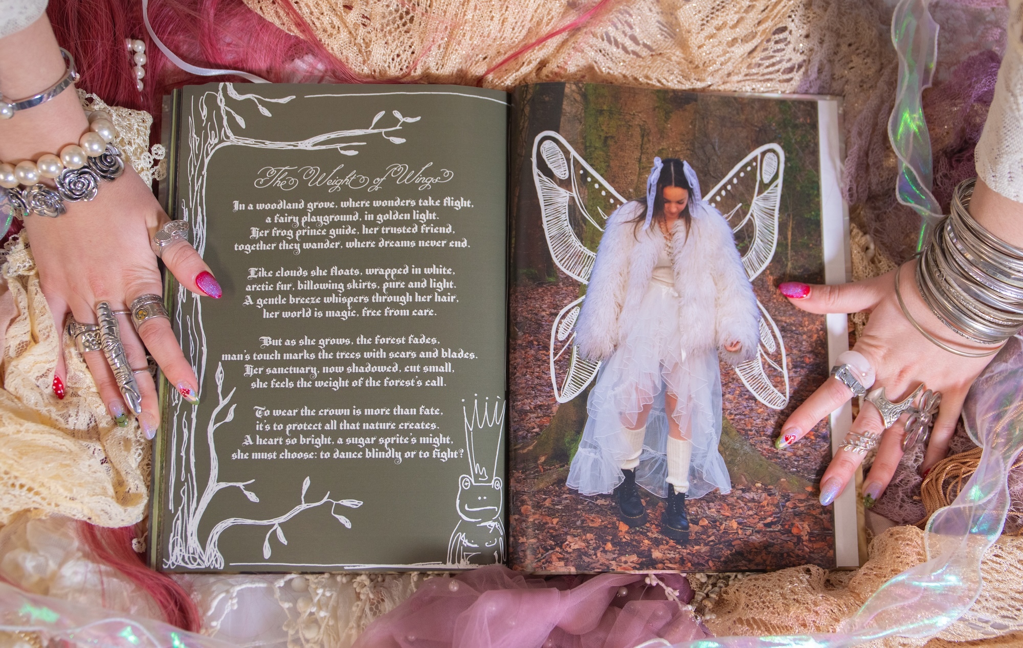 The highlight of my time at uni was being able to collate all the skills and connections I acquired into my third-year Final Major Project – Escape. I created 300-page publication reimagining fairytale archetypes (Mermaid, Fairy, Witch and Knight) through a stylist lens, which included 12 editorials, poetry, illustration and styling all sourced from charity shops.