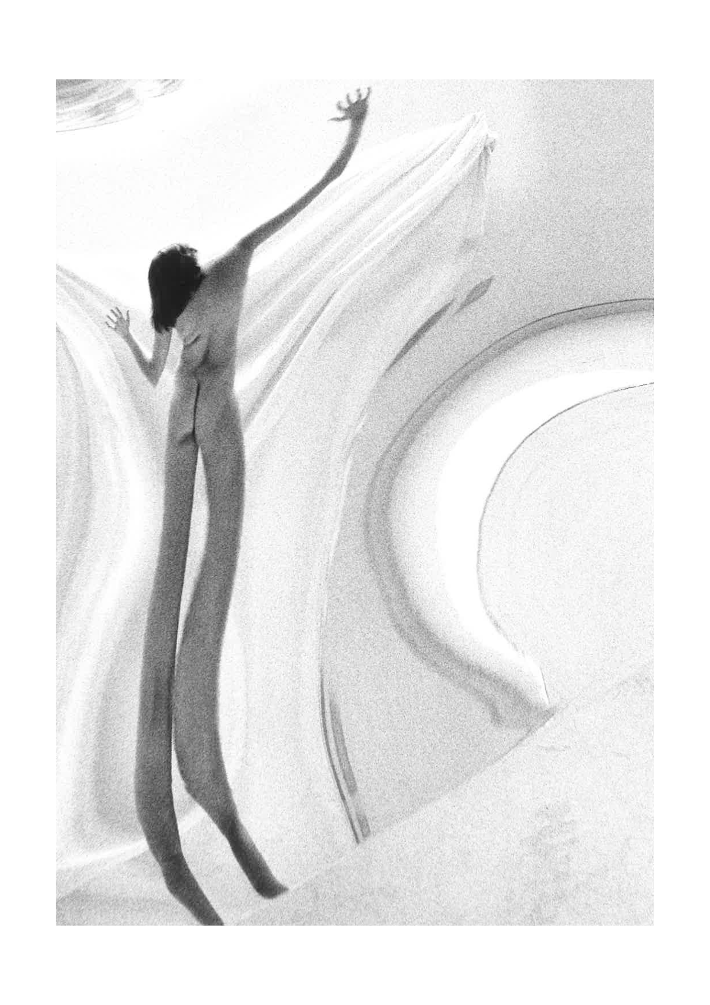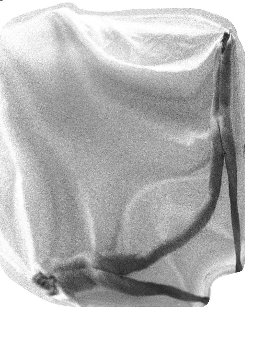 The work explores the relationship between the body and space, looking into the experience of existence and being in this world and how it feels to be alive. The process of developing film and darkroom printing influenced this work by its nature – I enjoy that I control (to some extent) this existence of the image on the page. Watching the make-up of grain form on the page to compose the image of a body in expressive movement led me to consider the human condition and how we fit into the environment around us. Additionally, the grain within the image acts as the atomic construction of the body within the image.